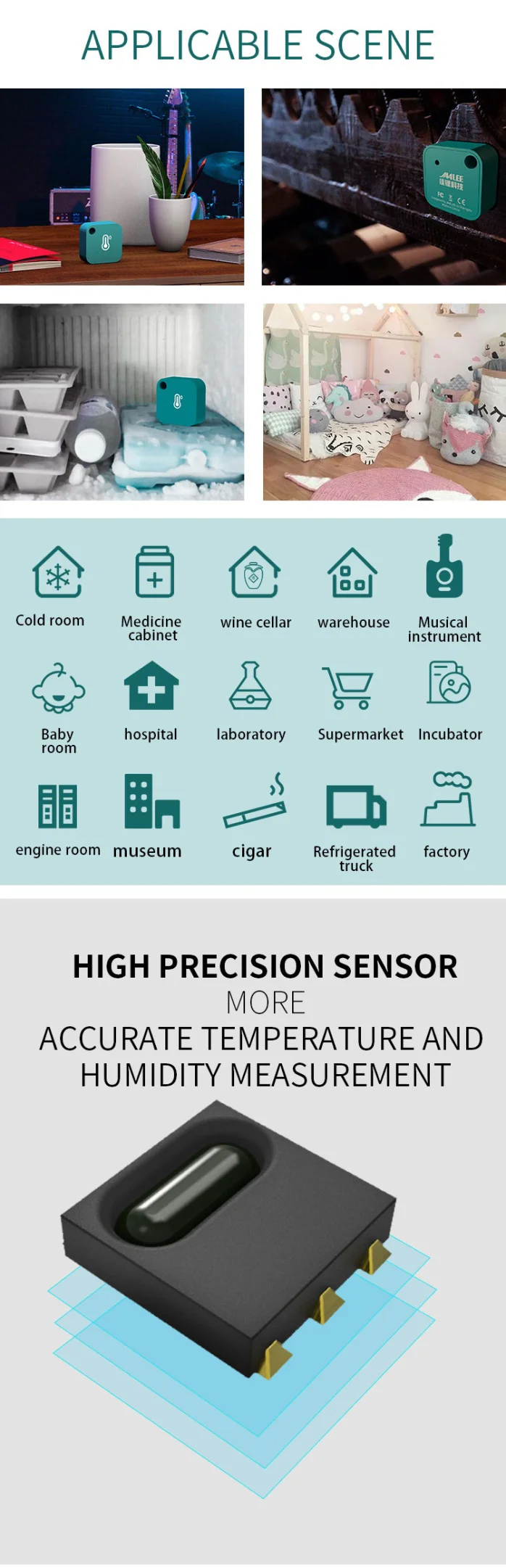 4.Встроенный высокоточный цифровой датчик может быстро и точно находить изменения температуры и влажности;