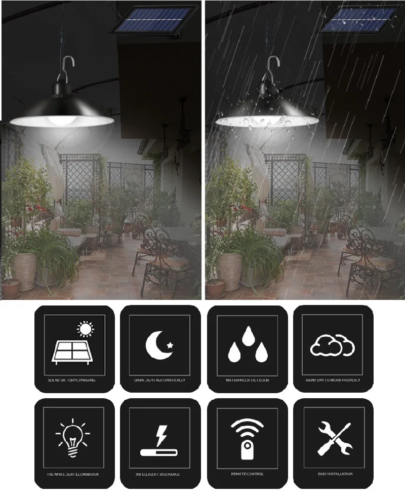 2. Водонепроницаемость: Эта Солнечная лампа изготовлена из высокопрочного пластика. Солнечная панель имеет уникальный водонепроницаемый дизайн, который может выдержать все виды плохой погоды.