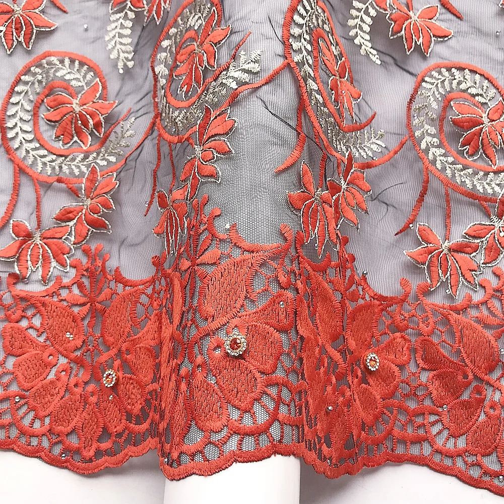 2022 Оранжевый французский Тюль Кружевная Ткань 5 ярдов Свадебный швейцарский шнур нигерийские кружевные ткани красная вышитая чистая ткань Африканское кружево