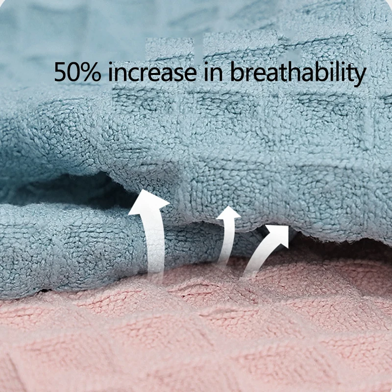 Вафельное полотенце позволяет высохнуть до 50% быстрее. Передовая ткань поглощает более чем в 10 раз вес в воде. По сравнению с традиционными полотенцами, очень мягкими и супер абсорбирующими, быстрее высыхает волосы и экономит ваше время.
