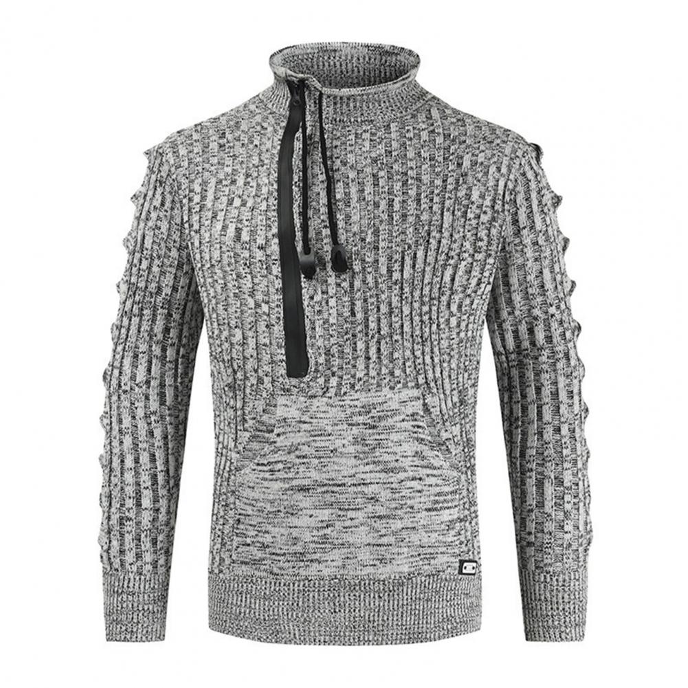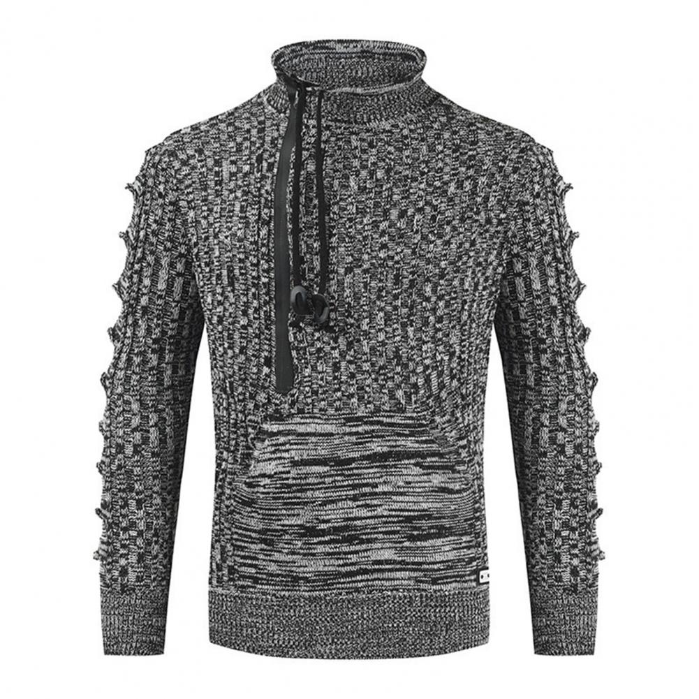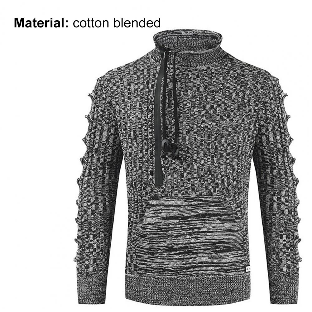 Мужской свитер с длинным рукавом и высоким воротником, осенне-зимний однотонный вязаный свитер на завязках, уличная одежда
