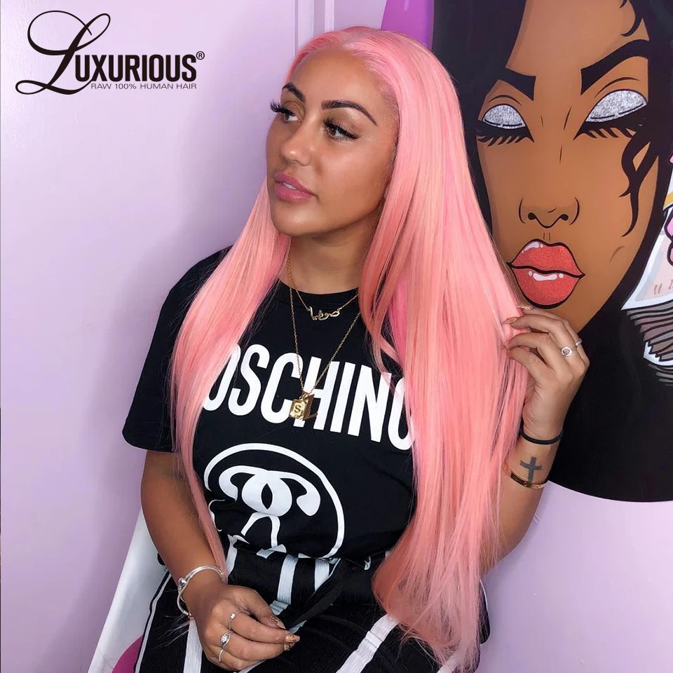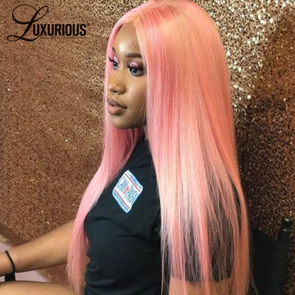 13X4 Transparent HD Pink Straight Body Wave Lace Front Wig Peruvian Red Lace Frontal Human Hair Wigs For Women Pre Plucked