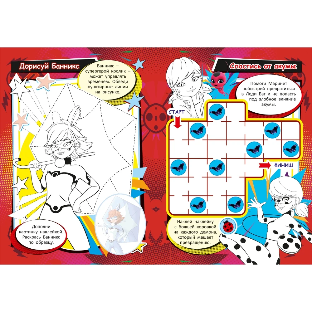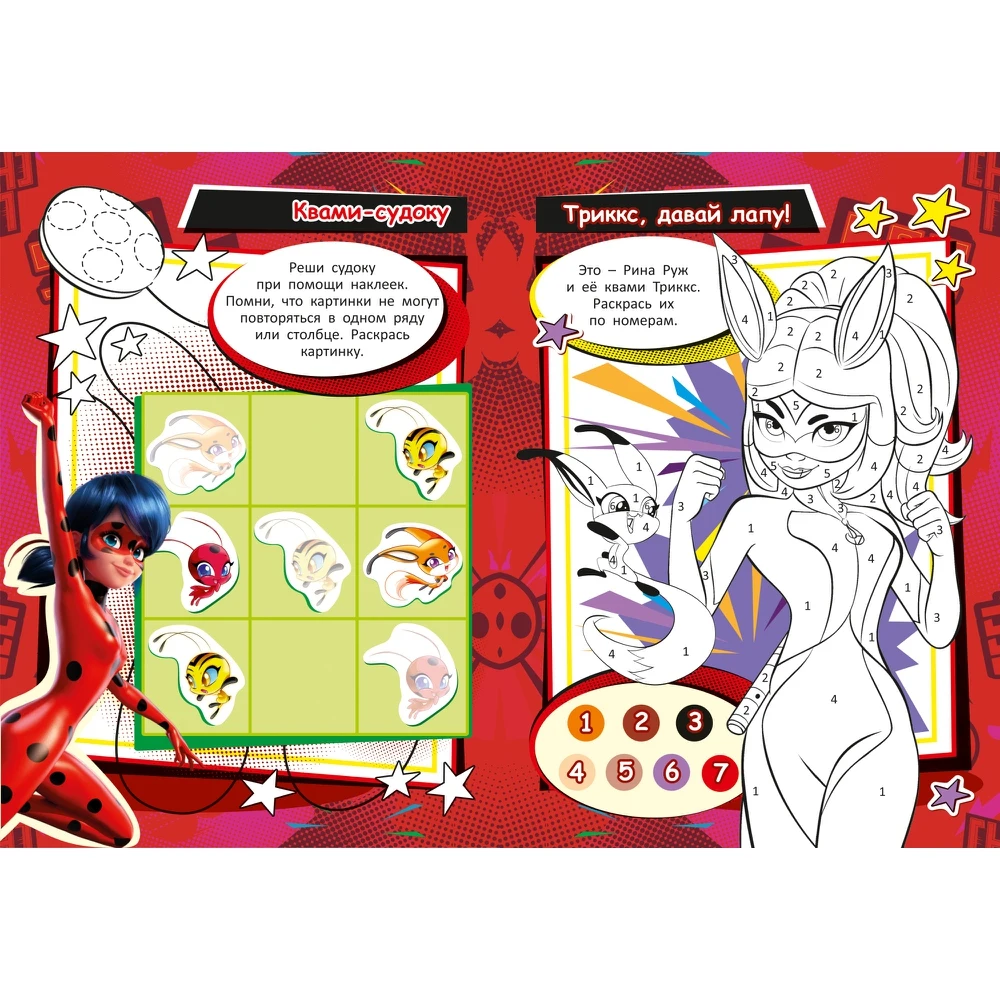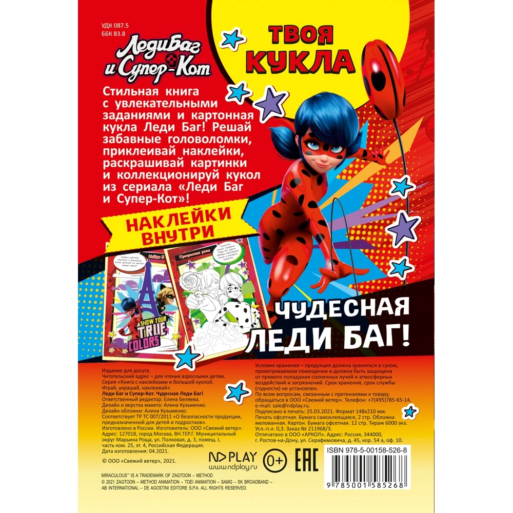 Стильная книга с увлекательными заданиями и картонная Леди Баг! Решай забавные головоломки, приклеивай наклейки, раскрашивай картинки и коллекционируй кукол из сериала "Леди Баг и Супер-Кот".