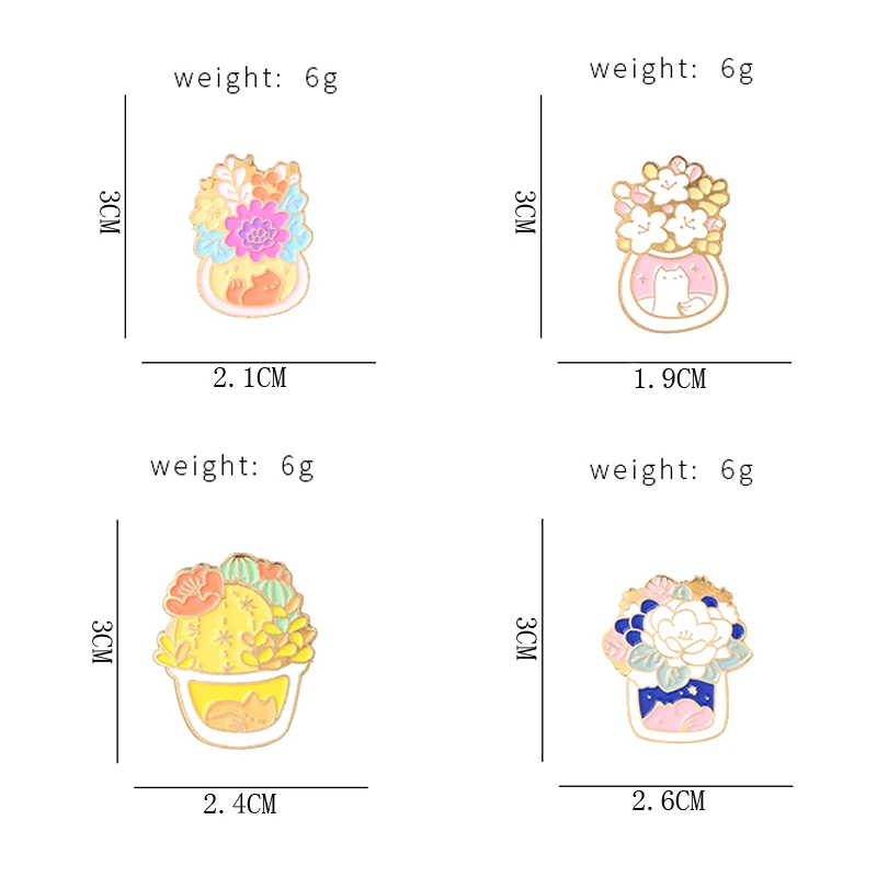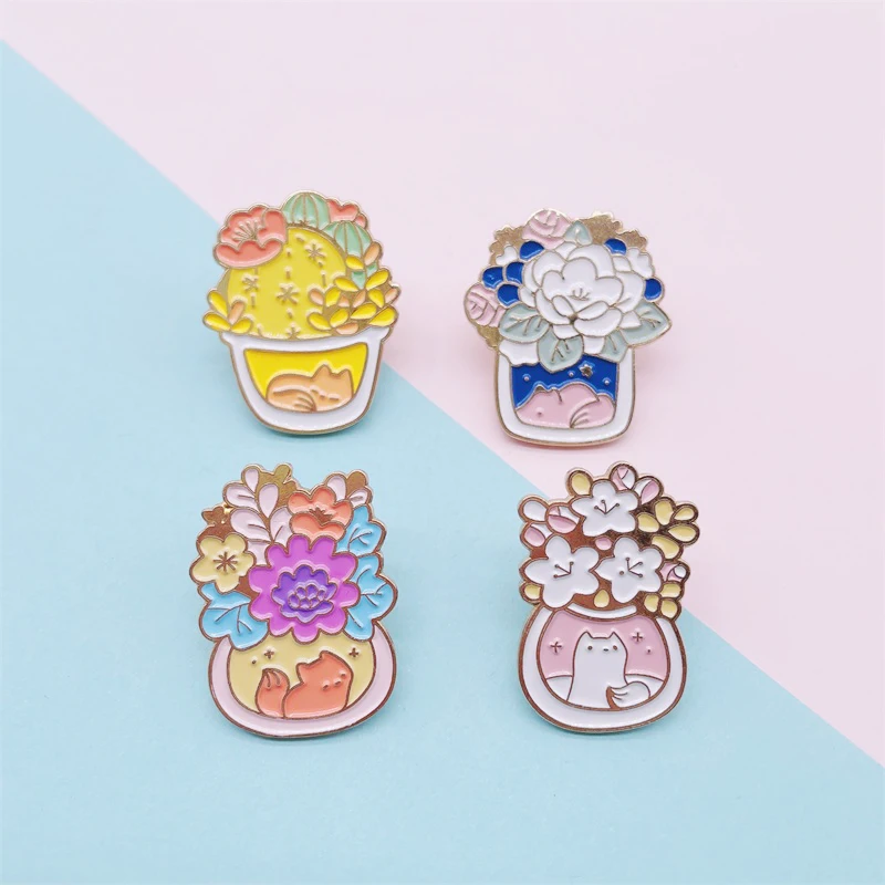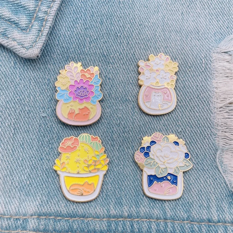Брошь женская винтажная в горшке броши виде растений булавка форме кота или