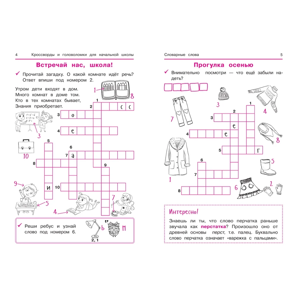Книга содержит познавательные визуальные кроссворды, ребусы, загадки, которые научат школьника правильно писать словарные слова. Кроссворды и головоломки, составленные на понятные и интересные ребенку темы (природа, животные, морской отдых, зимняя погода, космонавтика, жилище и т.п.) и предусмотренные программой для начальных классов общеобразовательной школы, помогут учащимся быстро и прочно закрепить правописание сложных слов. Чем же так хороши визуальные кроссворды? А тем, что для угадывания слова ребенку предлагается не скучное определение, а забавная картинка, которую нужно раскрасить. Поэтому запоминание правописания словарного слова происходит для ученика весело, в игре, а значит, крепче и надежнее. Задания развивают словарный запас школьника, любознательность, интеллект, наблюдательность, логическое мышление, стимулируют к изучению русского языка, помогают весело провести досуг.