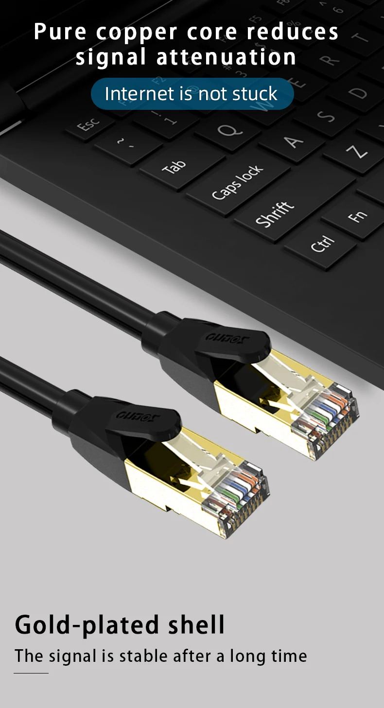 3. 【Защитная структура】 SFTP мульти-пара витая пара внешний продольно обернутые алюминиевой фольги + металлическая оплетка сетки экранированный сетевой кабель, анти-помех, без потери сигнала, скелет, 8-ядерный витая пара структура, сигнал более стабильный и гладкий