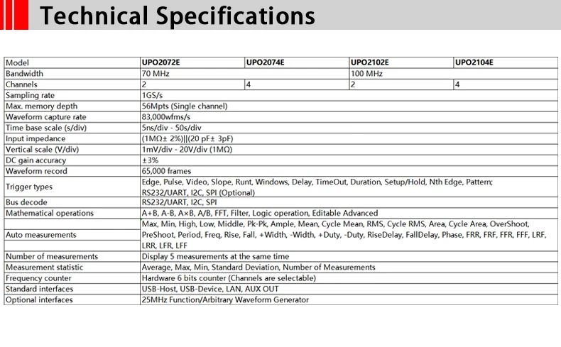 Серия UPO2000E предлагает беспрецедентную ценность в клиентских приложениях благодаря своей инновационной технологии, ведущим в отрасли спецификациям, мощным триггерным функциям и широким возможностям анализа.