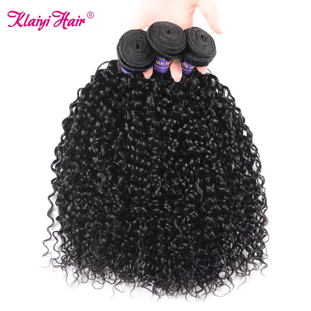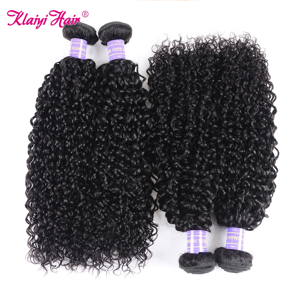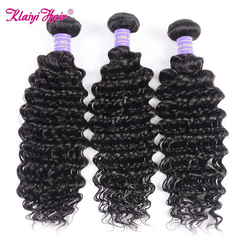 Klaiyi Curly Hair Bundles Brazilian Hair Extension 100% Human Hair Bundles Natural Black Weave Extensions 1/3/4 Pcs Deep Wave Bundles