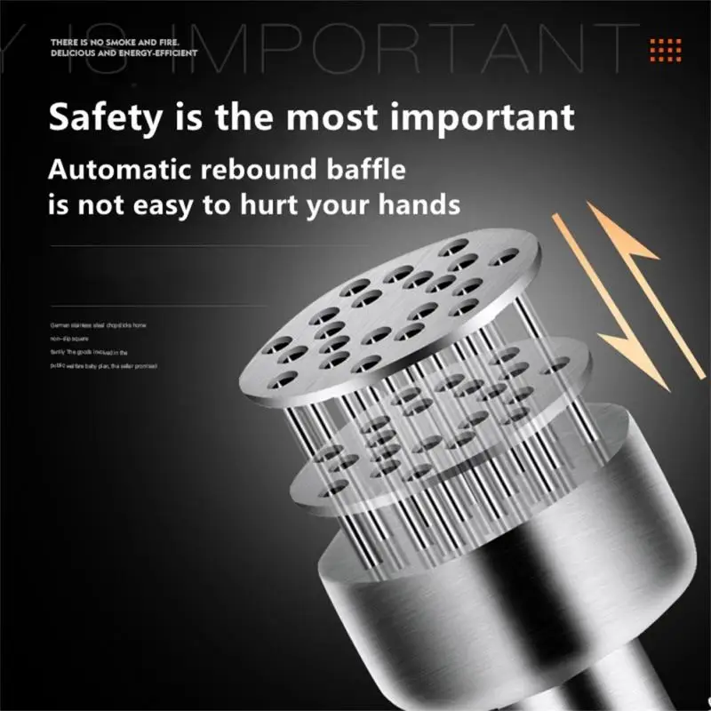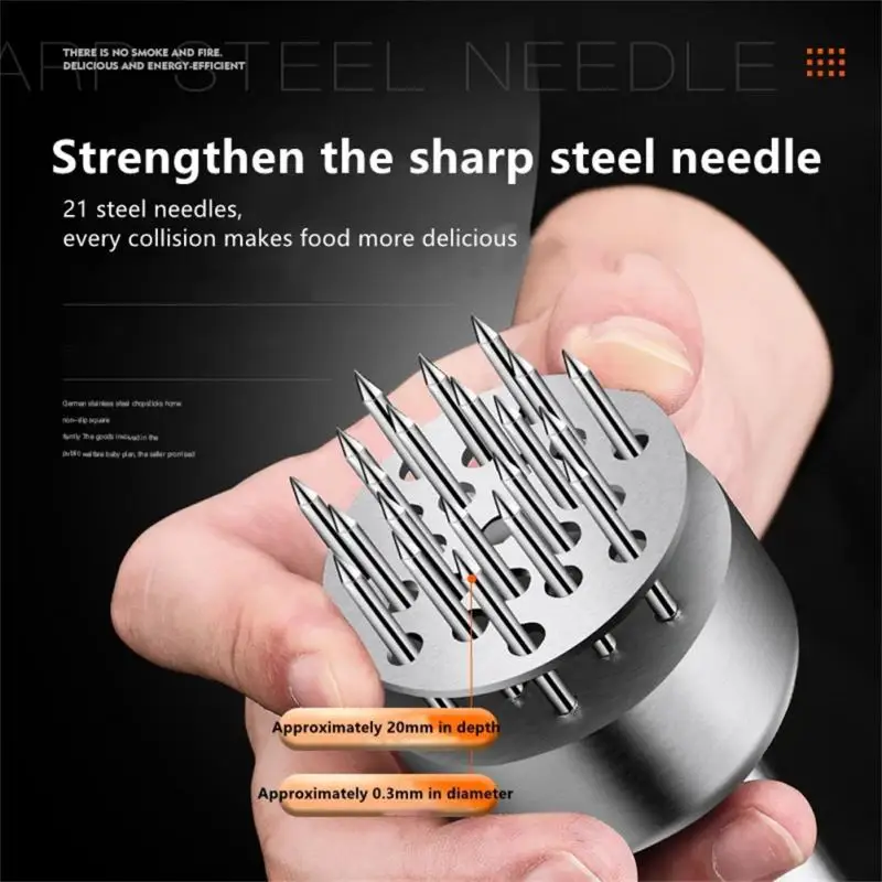 Безопасный и простой в использовании-Изготовлено по чрезвычайно высоким стандартам, 21 лопасти из нержавеющей стали, это прочное устройство имеет проектированный пружинный блок, который тщательно убирает лезвия для безопасности, прокалывая чисто и легко через ваше мясо. Он имеет эргономичную форму, чтобы удобно держать руку; Просто нажмите на устройство для использования, активируя три ряда супер сильных, ультра острых лезвий.