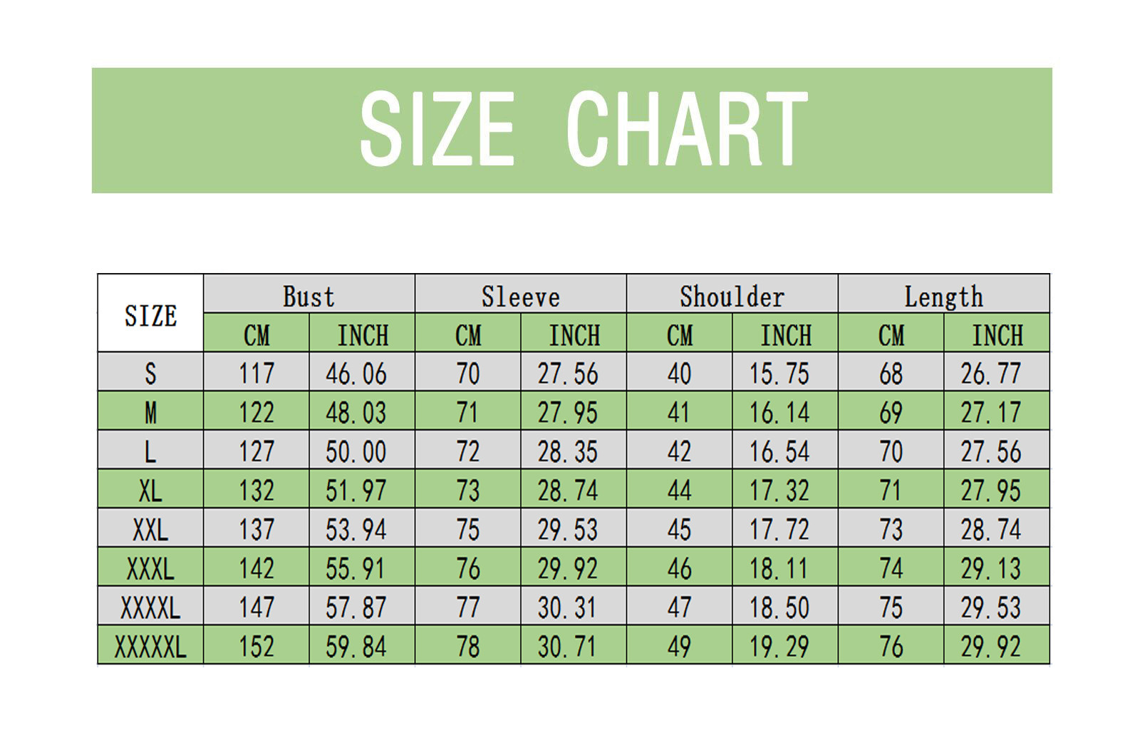 XXXXXL | 152 см/59,84'' | 78 см/30,71'' | 49 см/19,29'' | 76 см/29,92'' |