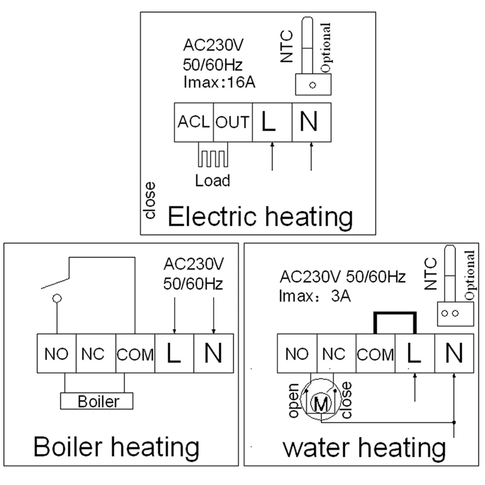Питание термостата: источник питания USB/4 * AAA батареи (пожалуйста, удалите батареи, когда USB питание работает)
