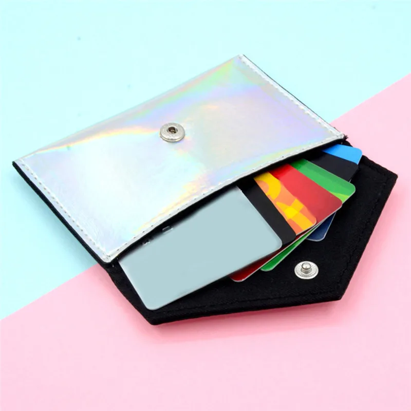 Лазерный блестящий кошелек для монет для девочек, женский простой кошелек для карт, маленький держатель для кредитных карт, кожаные женские сумки для визиток