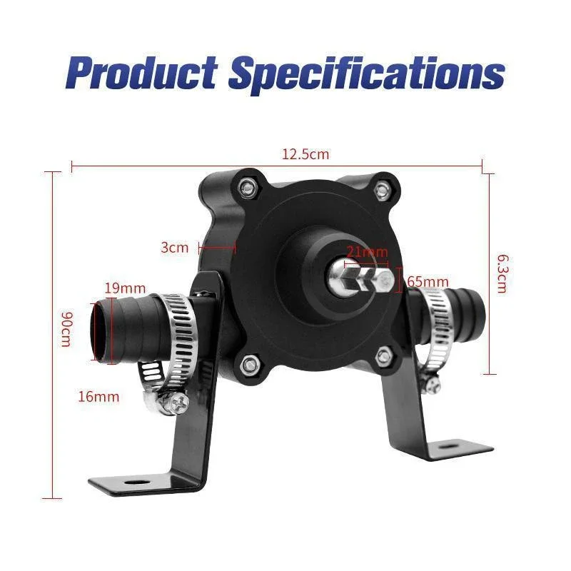 Источник питания не требуется, если имеется ручная электрическая дрель, ее можно использовать. Вода может быть перекачивается без источника питания, что удобно и быстро, и она может быть адаптирована к различным буровым установкам только путем установки соответствующего сверлильного патрона.