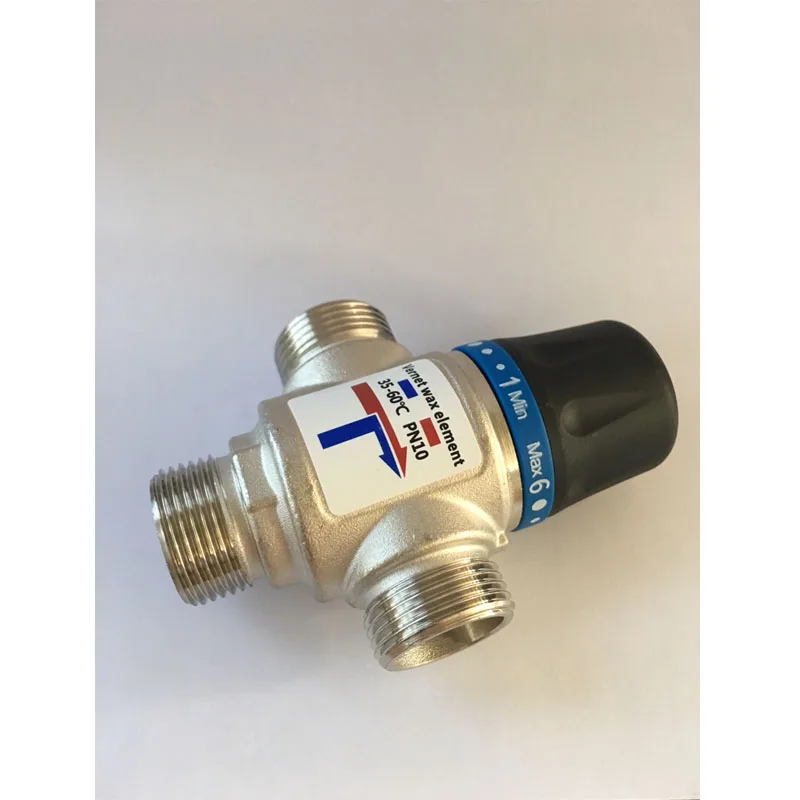 Новинка3 способа термостатический смесительный клапан DN20/25 внутренняя резьба/наружная резьба термостатический для солнечного водонагревателя Ванная комната аксессуарДиапазон рабочих температур: 35-60 °CМаксимальная рабочая температура: 95 °C (короткое время: 110 °C)Точность смешивания на выходе: ± 2 °CСправочное горячее и холодное давление: 3 барМаксимальное статическое давление: 10 барМаксимальное рабочее давление: 5 барМаксимальная разница между входным давлением: 3 барПоток: Kvs 2,5Жидкость: санитарная вода, вода/гликоль раствор Макс 30%Соединения: мужская или Женская нитьКорпус клапана: CW617NРучка: NyloneПрокладка: EPDM