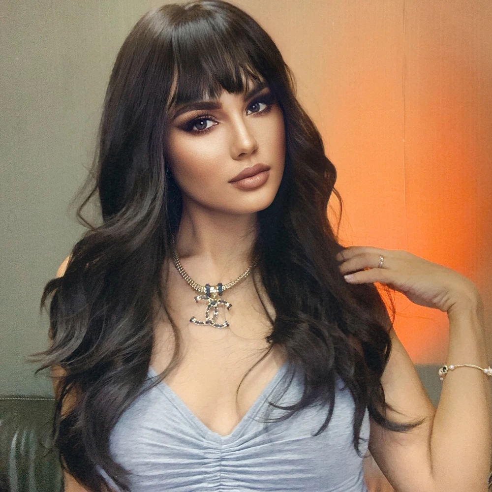 GEMMA длинные волнистые синтетические парики с челкой естественная волна темно-коричневый косплей парик для волос для женщин африканские термостойкие волокна