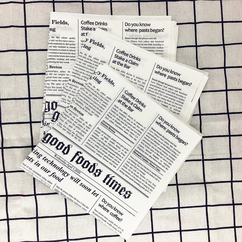 Материал: изготовлен из пищевого бумажного материала, устойчив к разрывам и смазке, уникальный дизайн, гарантирует, что все, что вы обернули, выглядит вкусно.