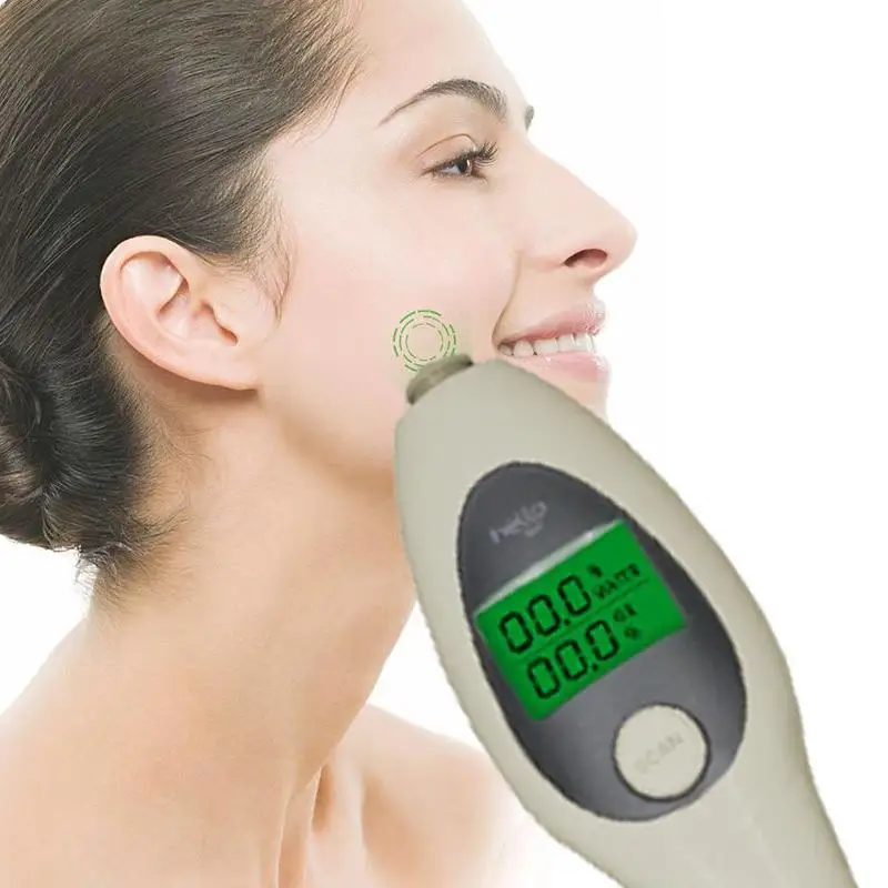 3. Зонд находится перпендикулярно испытательному участку, близко к коже (не забудьте как можно больше нажать на пробный зонд в оболочке), услышав звуковой сигнал около 3 секунд, ЖК-дисплей будет отображать влагу и масло % кожи в то же время значение;