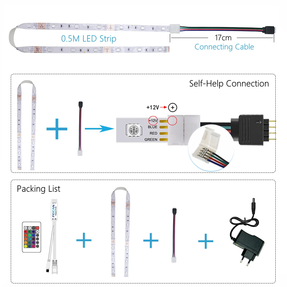 Пожалуйста, подключите светодиодную ленту в соответствии с изображениями. Если нет, вы можете сгореть адаптер питания.