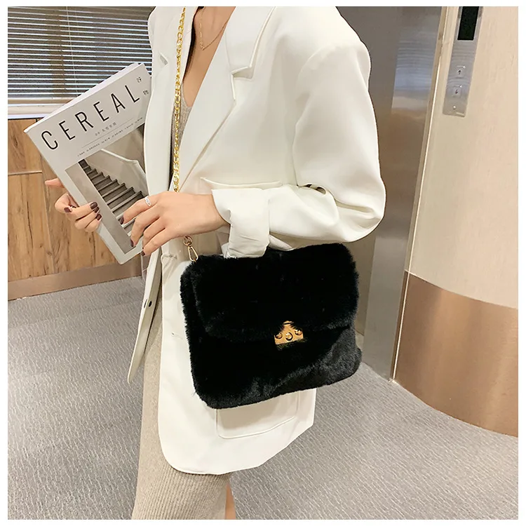 Новая зимняя плюшевая сумка через плечо из искусственного меха, сумки через плечо для женщин, модная дизайнерская женская сумка через плечо с цепочкой