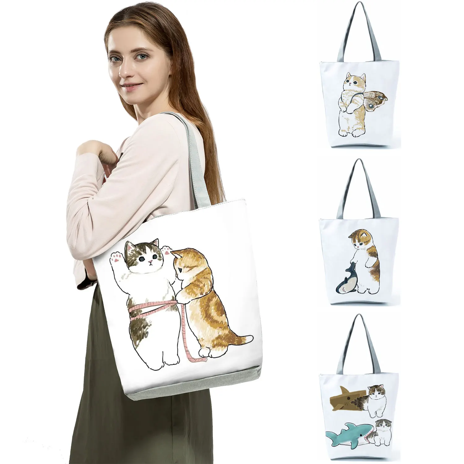 Мультяшная Милая кошка, сумка для покупок, сумка для покупок, повседневная женская сумка с животными, большая вместительность, многоразовая сумка, Прямая поставка