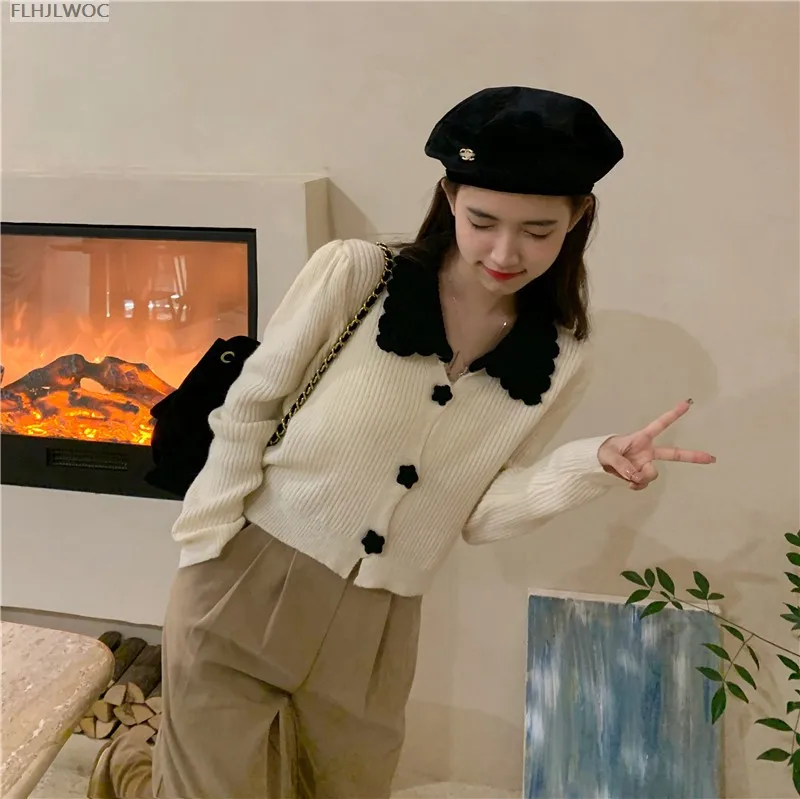 Короткая верхняя одежда на зиму и весну, хит, женские повседневные свободные однобортные кардиганы коричневого и розового цвета с пуговицами в японском стиле