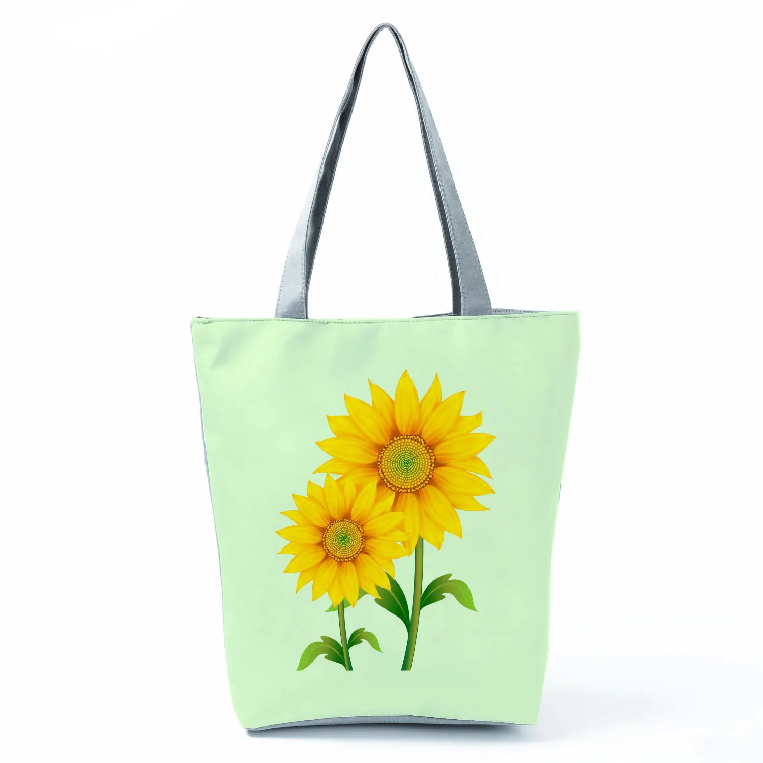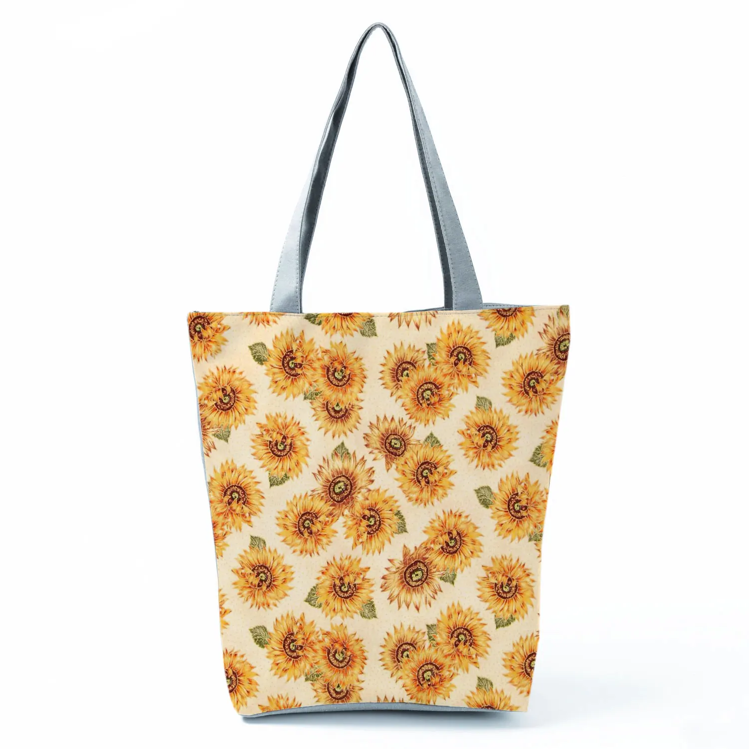 Сумка-тоут с принтом подсолнуха, многоразовая сумка на плечо для покупок, складная сумка-тоут, Подарочная женская сумка, сумки на открытом воздухе