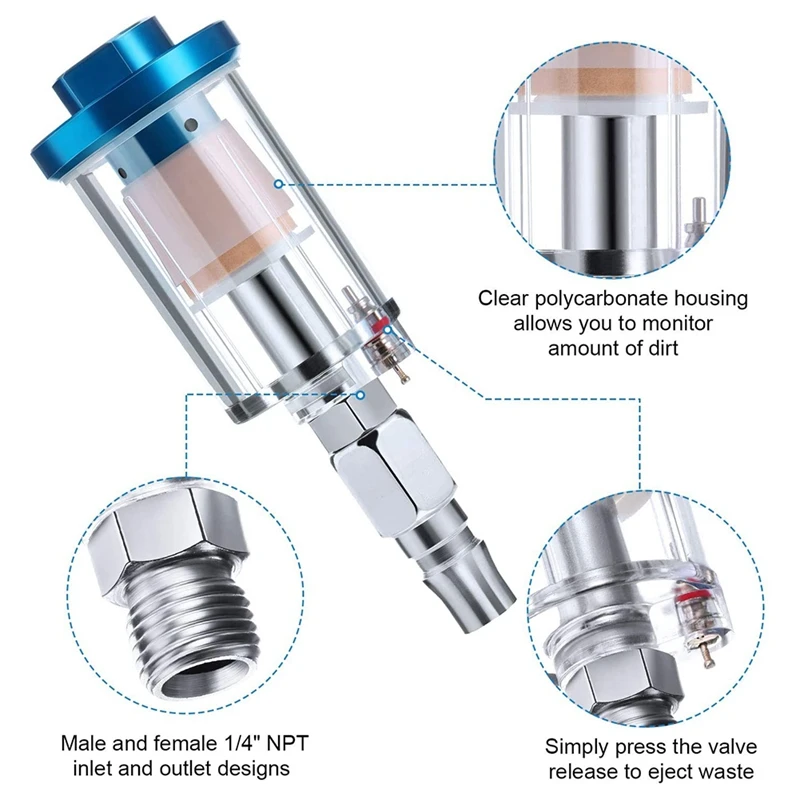 Акция! Водный масляный сепаратор фильтр Аэрограф Фильтр влагоотделитель 1/4 дюйма NPT вход и выход (2 упаковки)
