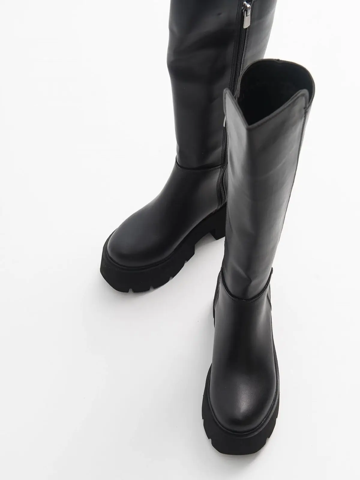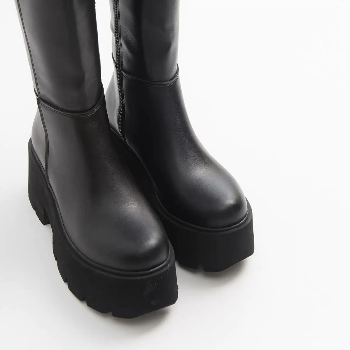 Женские ботинки из черной кожи; Высококачественная женская обувь на толстой платформе; Ботинки и ботинки