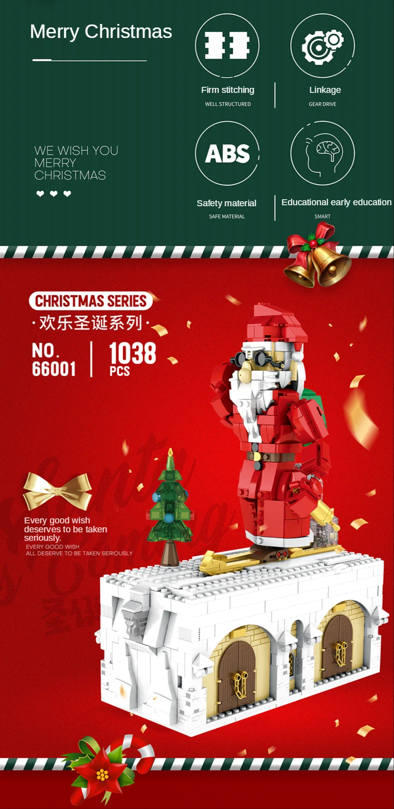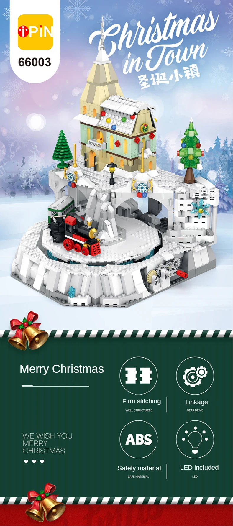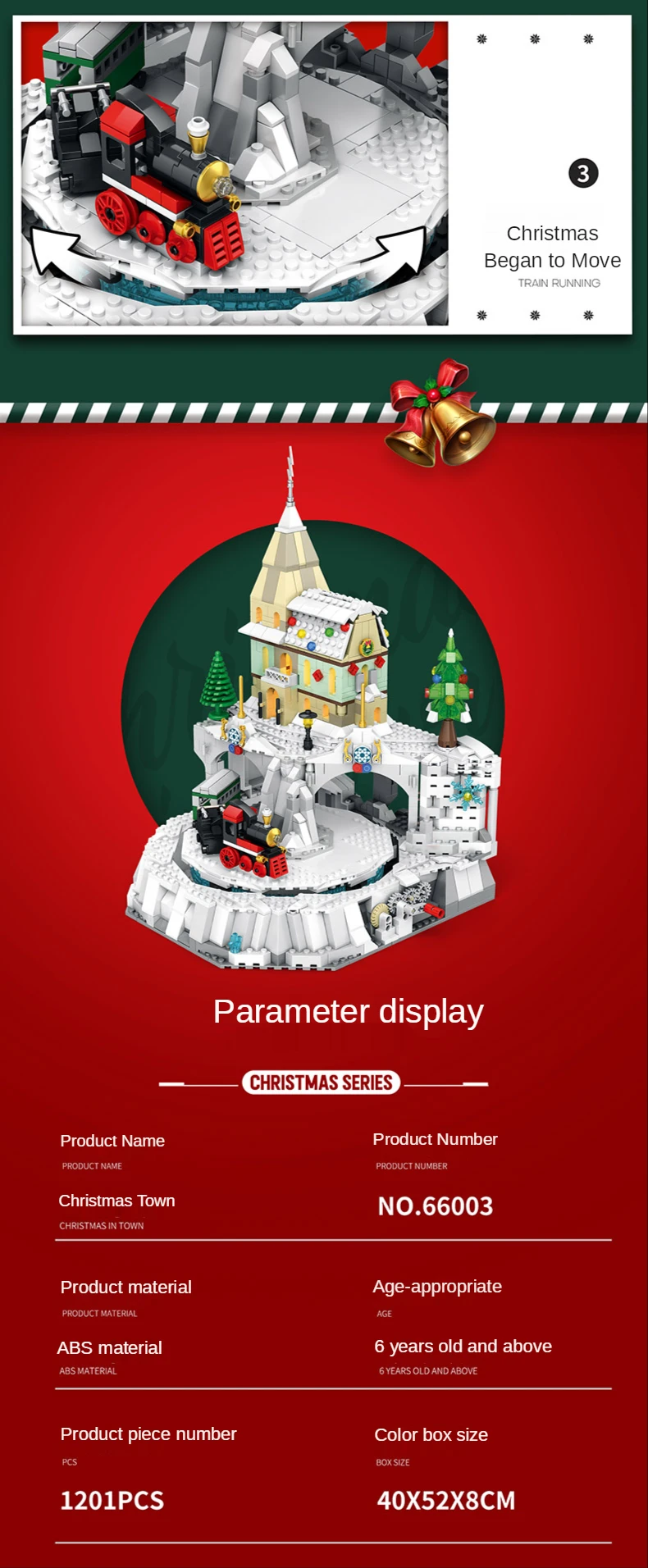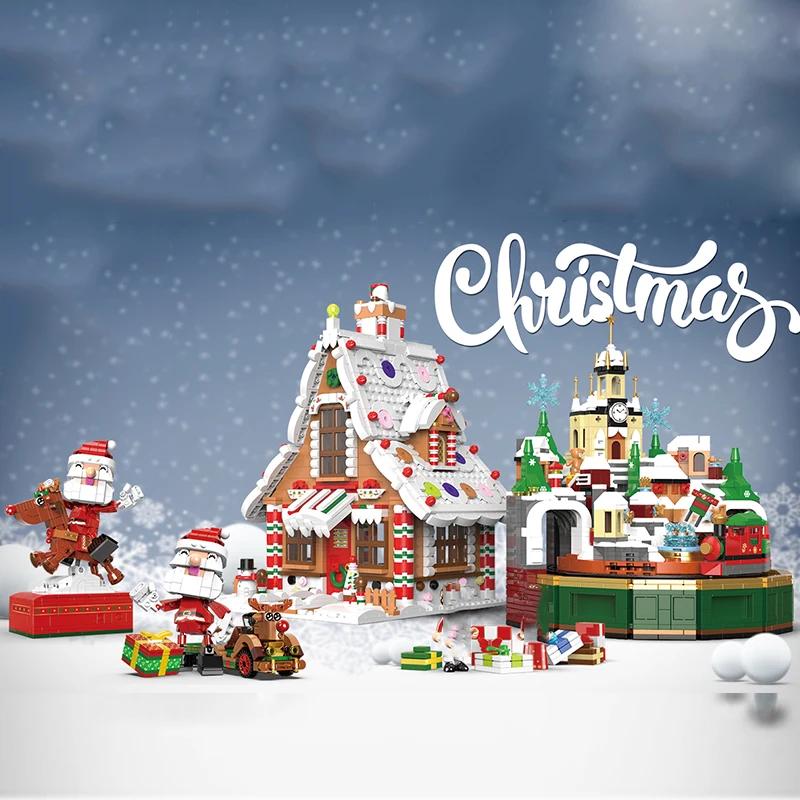 · Товар: Городской поезд, Рождественский зимний деревенский дом Санта-лося, строительные блоки, МОЦ, уличный вид, архитектурные Строительные кирпичи, детские игрушки