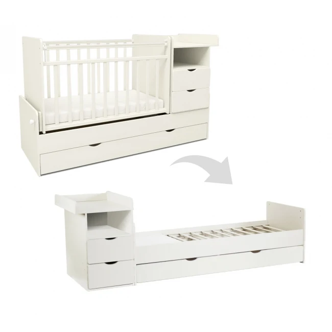 Детская растущая кровать-трансформер итальянского бренда Sweet Baby Valentino с маятником и ящиком сочетает в себе целую детскую комнату!.