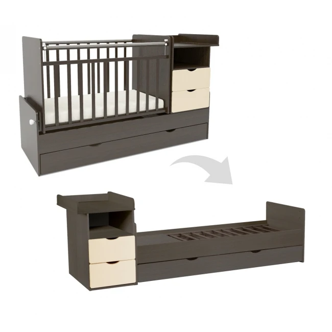 Кровать-трансформер Sweet Baby Valentino изготовлена из массива березы, с элементами из ЛДСП и МДФ.