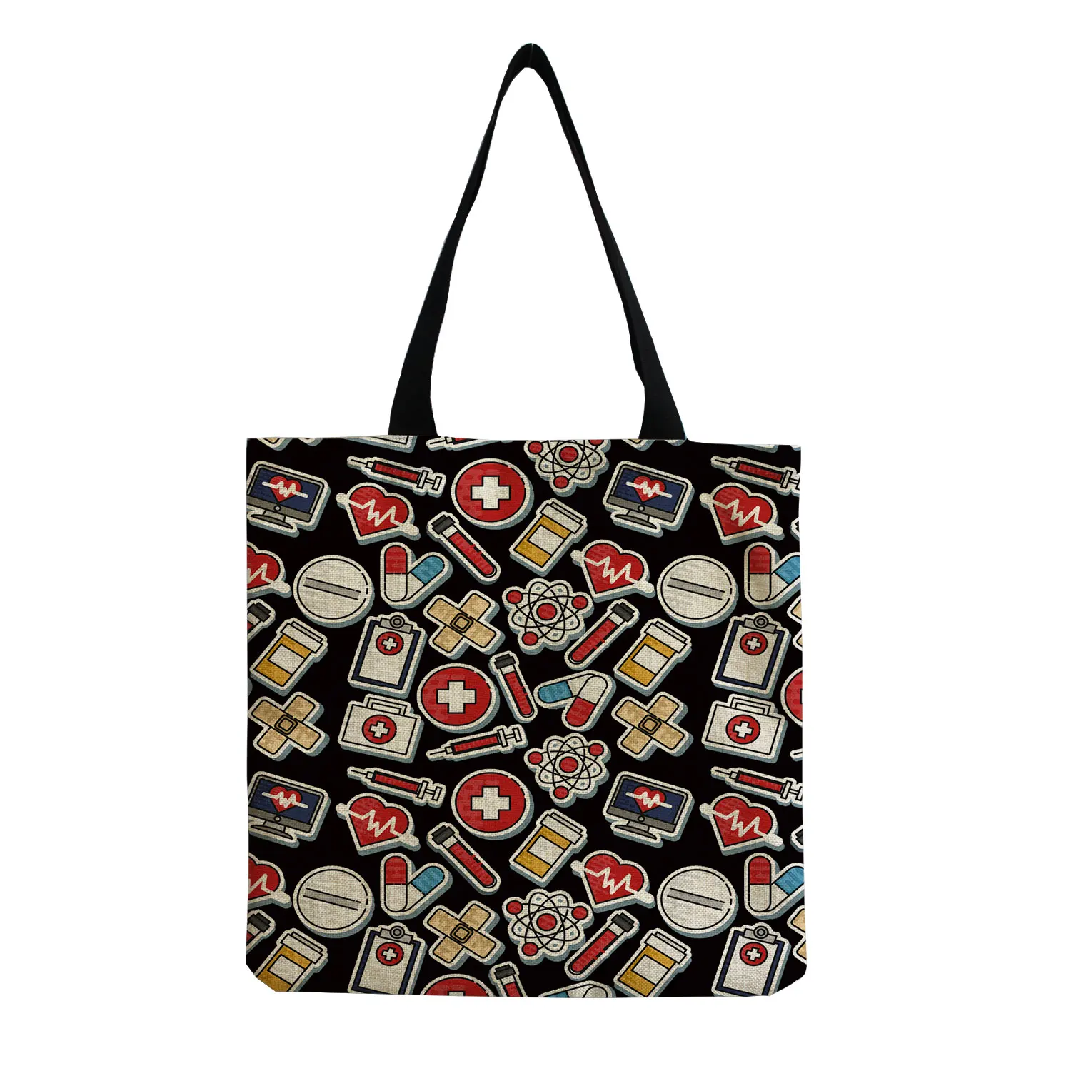 Экологичные сумки для покупок с принтом медсестры, женские сумки, льняные сумки, повседневные дорожные пляжные сумки для мам, продуктовый кошелек, сумка для работы