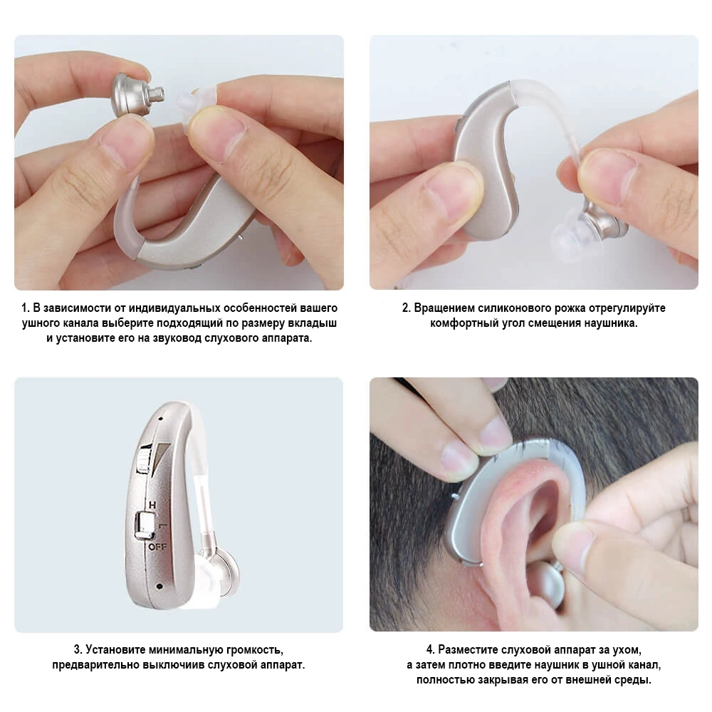 | Комплектация | Слуховой аппарат Адаптер питания Кабель USB Ушной вкладыш - 2шт. Звуковод - 2шт. Щёточка для чистки Футляр Инструкция |