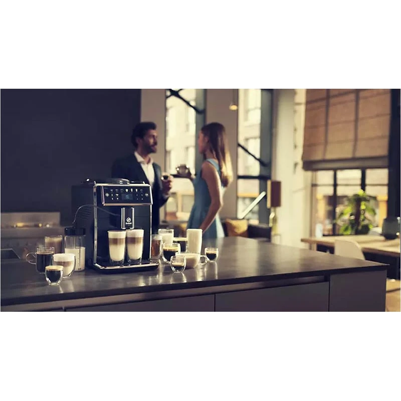 Регулировка уровня крепости кофе, объема кофе, температуры. Бойлер из нержавеющей стали, контейнер для молока. ЖК дисплей. Технология Latte Perfetto. Приготовление молотого кофе. Резервуар для воды 1,7 л, емкость для зерен 450 г.