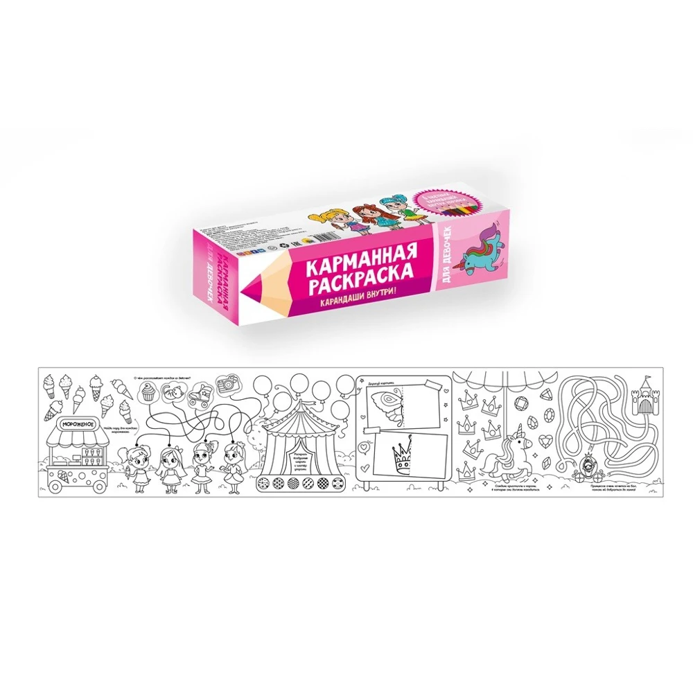 "Карманная раскраска" станет отличным помощником родителям, которые отправляются в дорогу с детьми. Теперь не придётся брать с собой книжку с раскрасками и цветные карандаши - потому что всё это умещается в компактной коробке "Карманной раскраски"! Внутри каждой коробки находятся тематическая раскраска с заданиями и набор карандашей. Оборот раскраски заламинирован - поэтому её легко раскрашивать на любой поверхности, даже просто на коленях. Интересные задания обязательно увлекут ребёнка и помогут скоротать время в очереди, на вокзале или в транспорте.