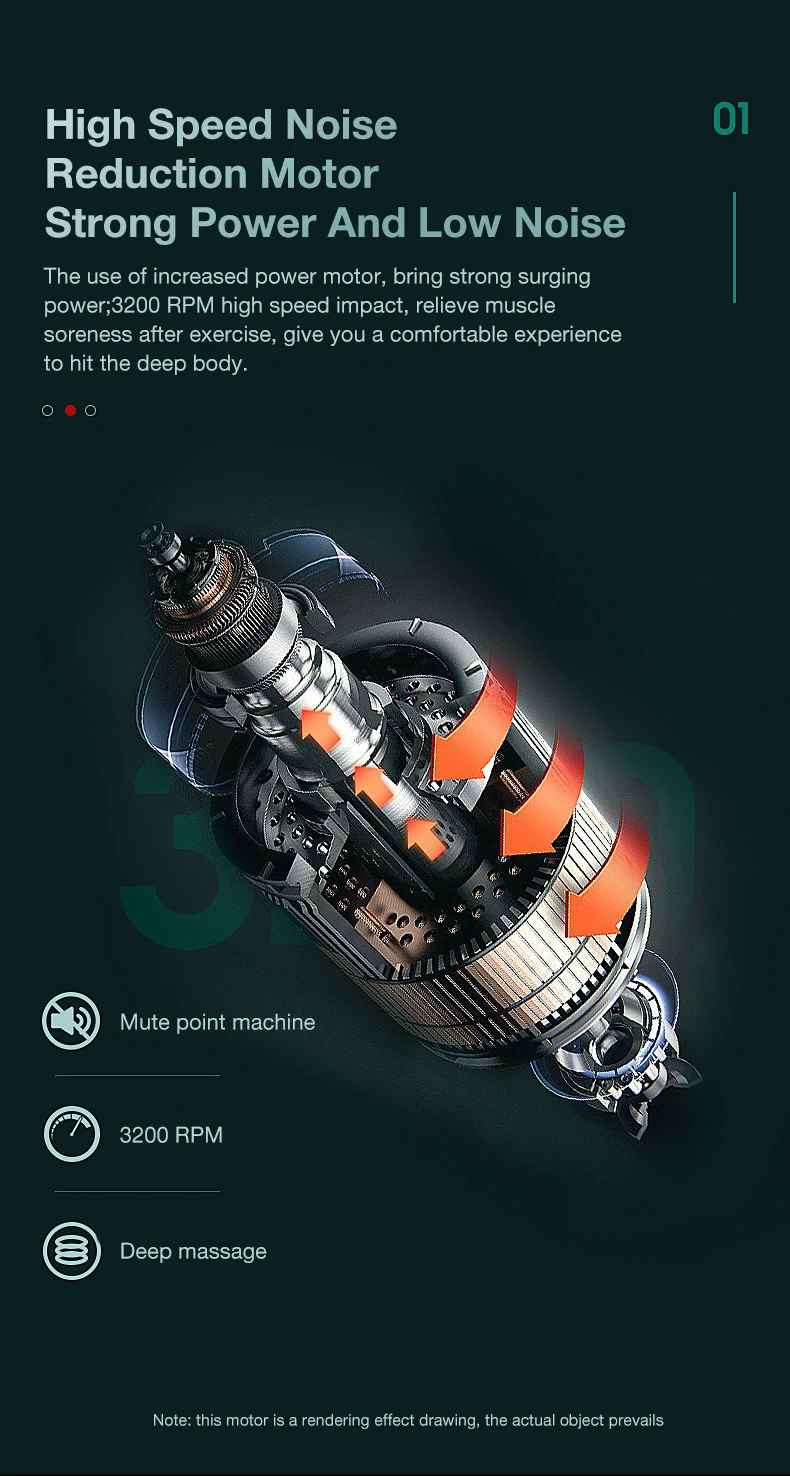 Использование увеличенного силового двигателя, приносит сильную мощность, 3200 об/мин высокоскоростное воздействие, снимает мышечную болезненность после физических упражнений, дает вам удобный опыт, чтобы ударить по глубокому телу.