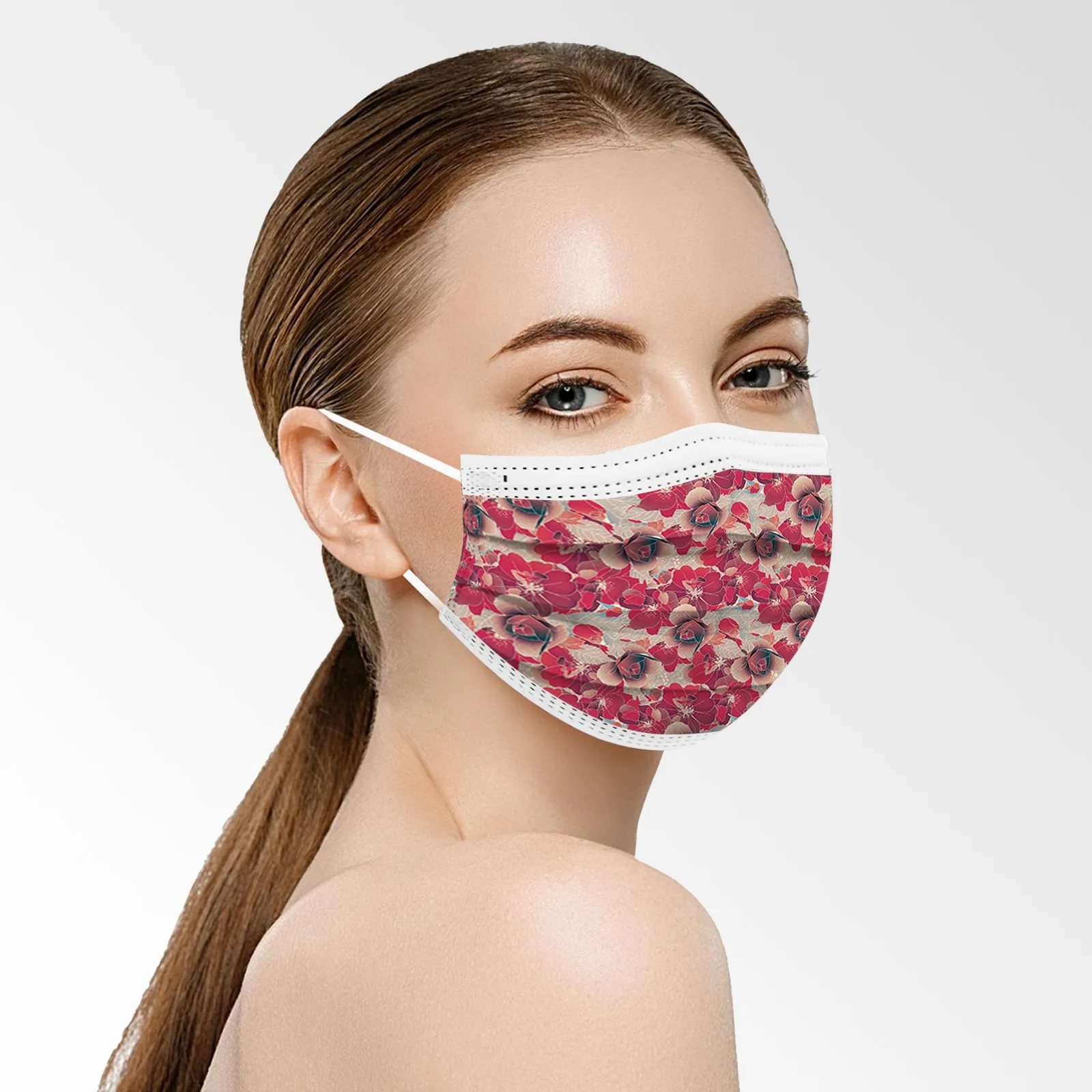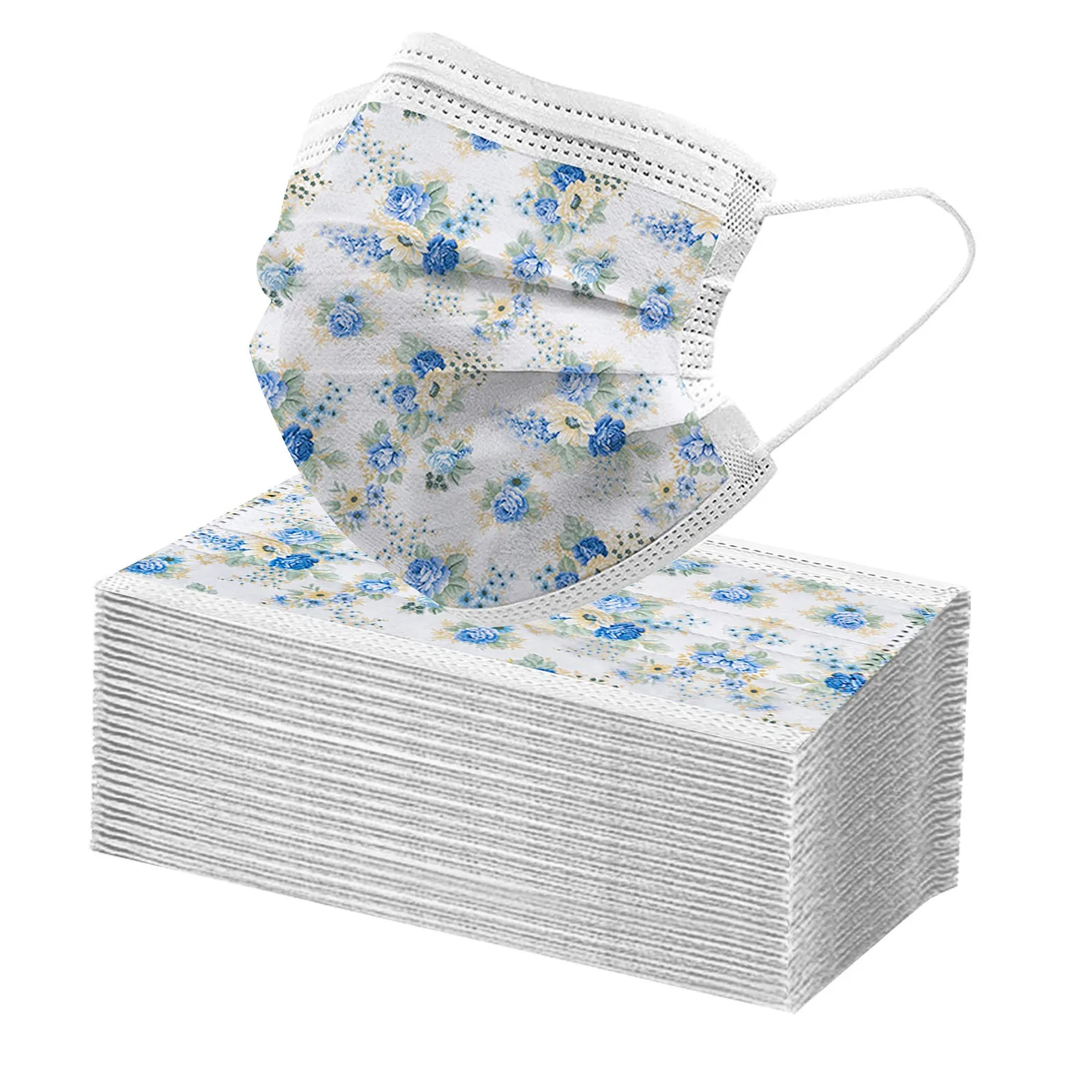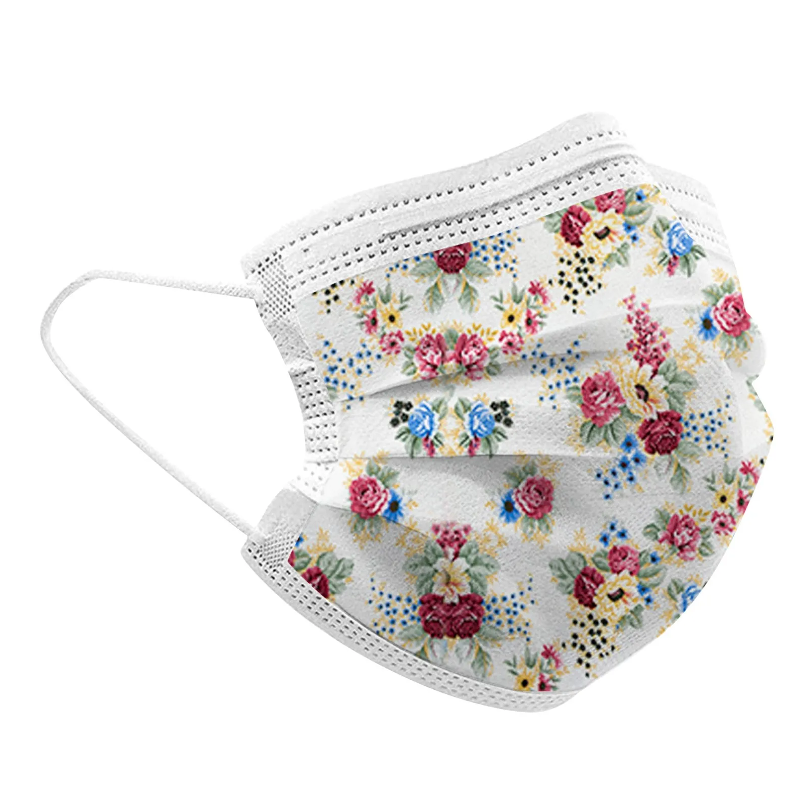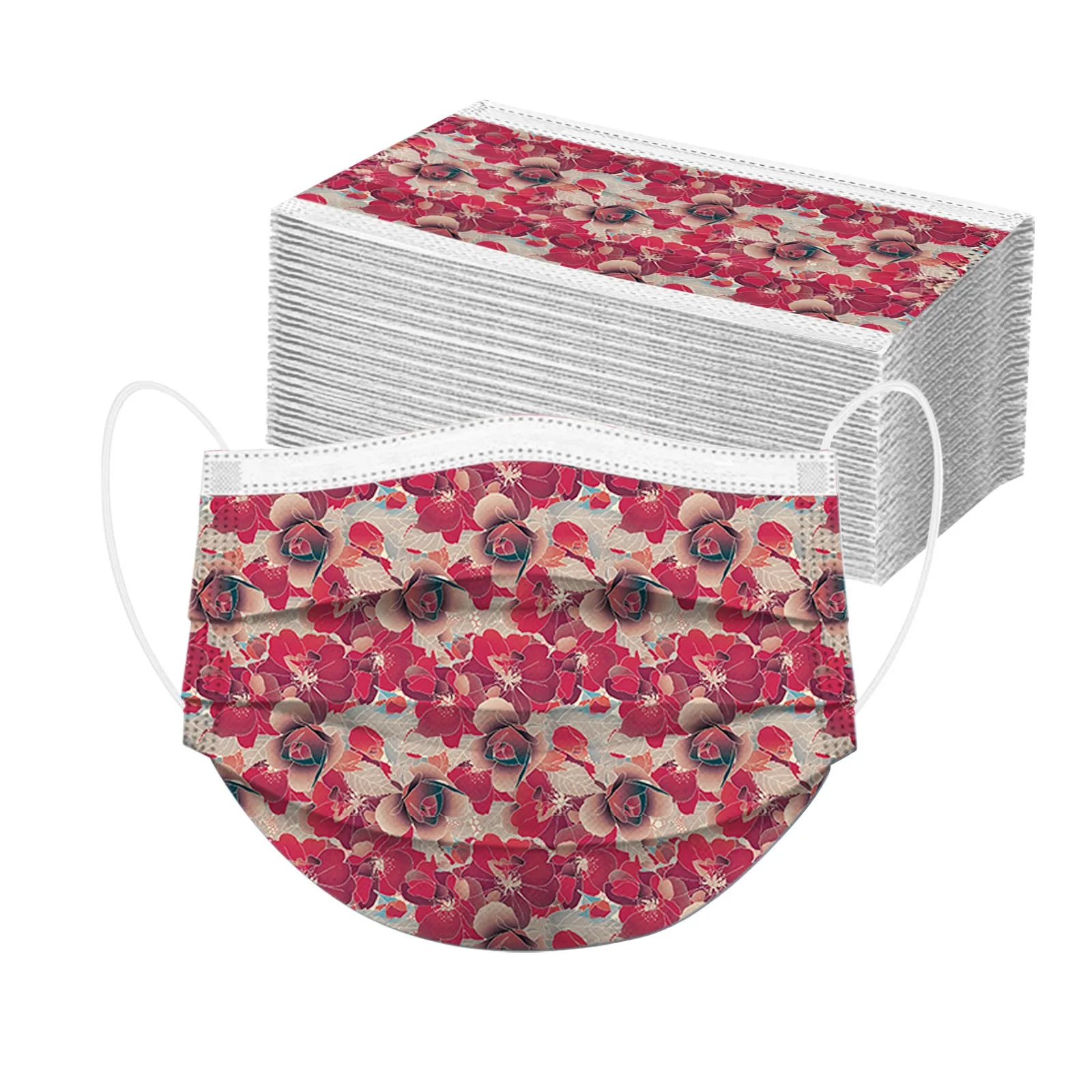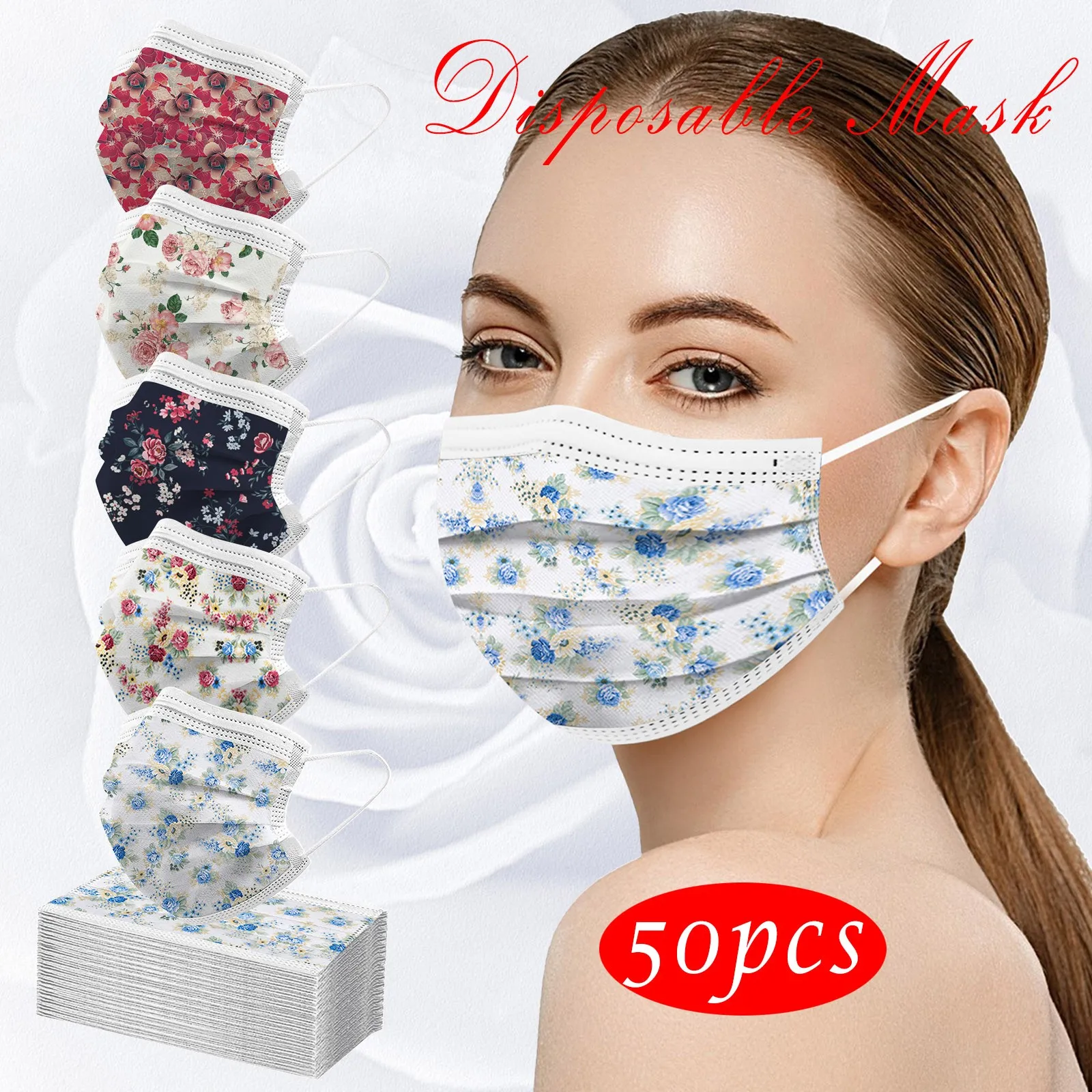 50 шт. взрослых красивый элегантный кардиган, с цветочным принтом, дышащая 3-Слои одноразовые маски