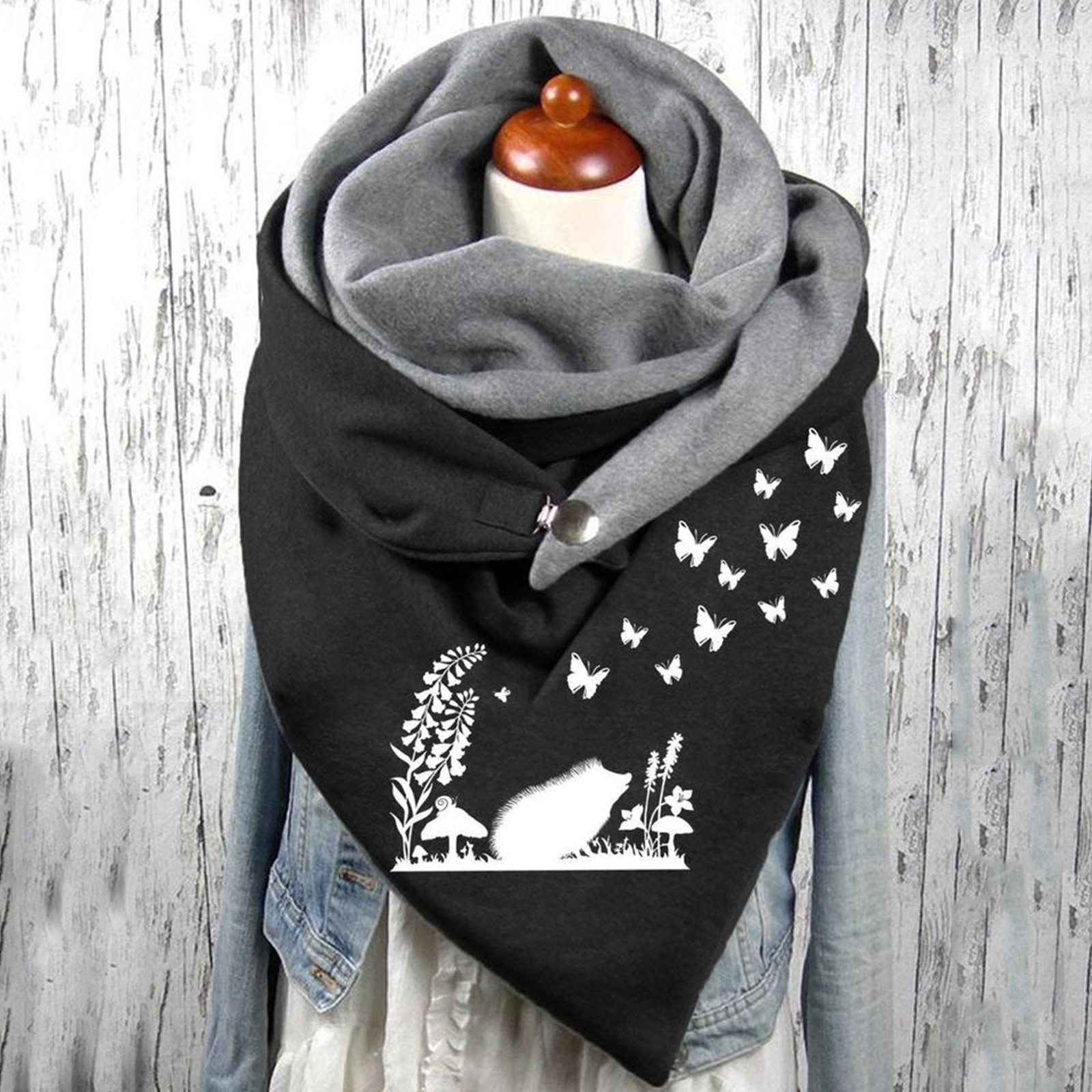 Модные женские повседневные теплые шарфы на пуговицах с принтом