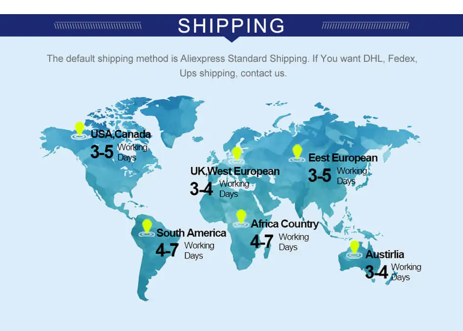 Мы предлагаем клиентам отправлять образцы экспресс-почтой, UPS, DHL, FedEx, TNT и другими службами экспресс-доставки, которые являются быстрыми и надежными. В отличие от этого, Обычная почта обычно занимает более двух недель для отправки образцов. Пожалуйста, сообщите нам номер отслеживания, как только вы отправите посылка, чтобы мы могли отслеживать статус доставки.