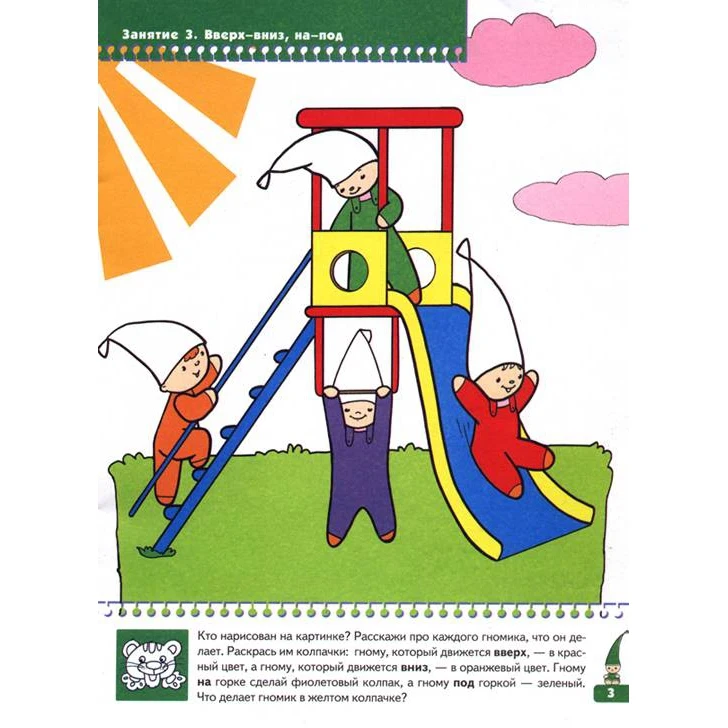 Школа семи гномов - это комплексная система занятий с ребенком от рождения до поступления в школу, 12 красочных развивающих пособий на каждый год жизни дошкольника. Семь лет до школы - семь цветов радуги. Для каждого возраста свой цвет, свои задания, свои книги. Так, например, у всех книжек для детей от 3 до 4 лет зеленые обложки.