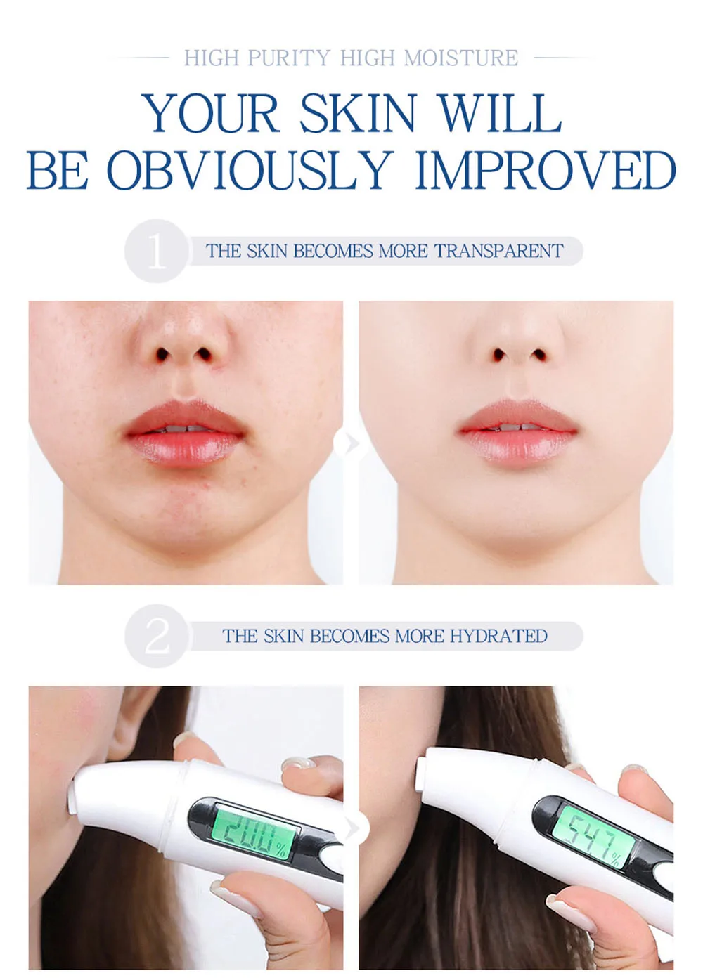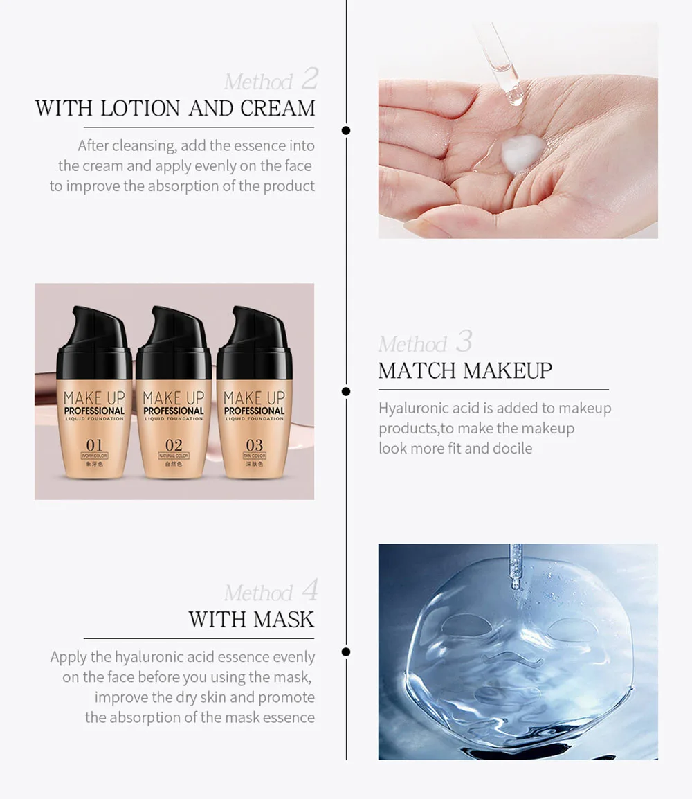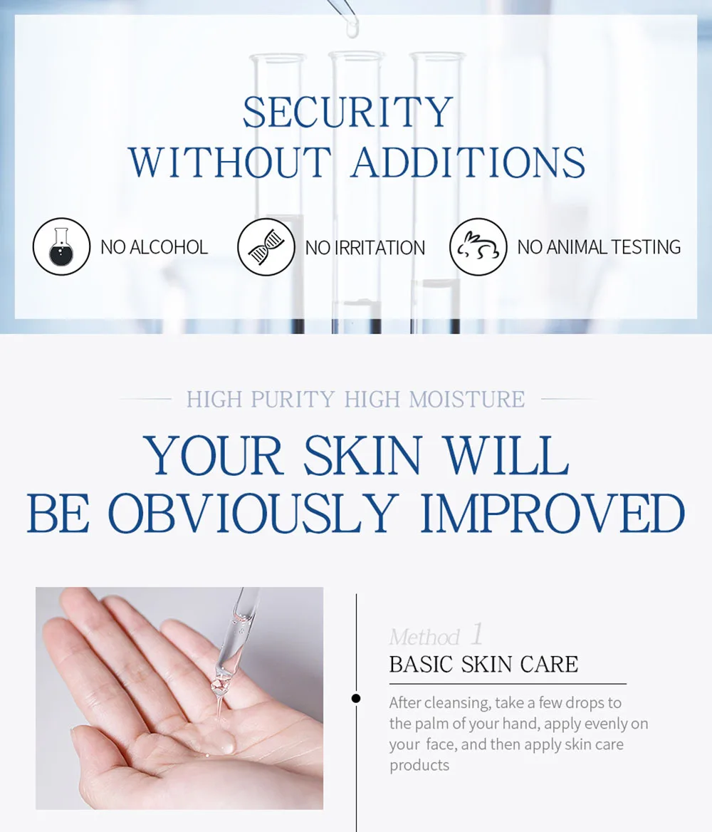 Эффекты: сыворотка гиалуроновой кислоты обладает лучшей увлажняющей способностью, проникает в ваши кожные барьеры,