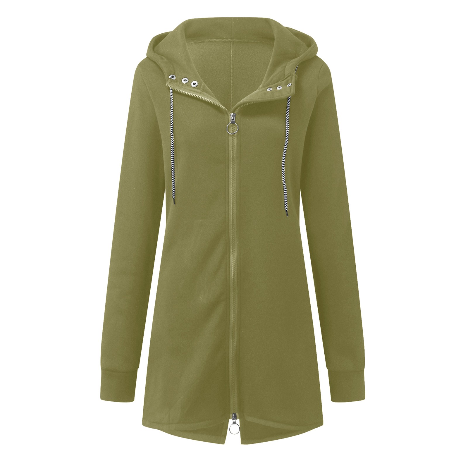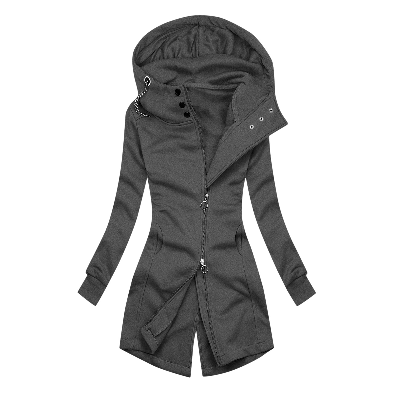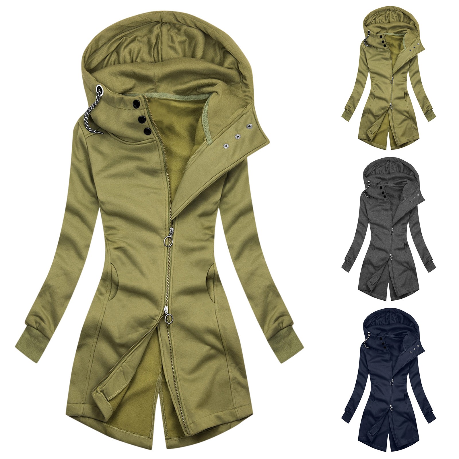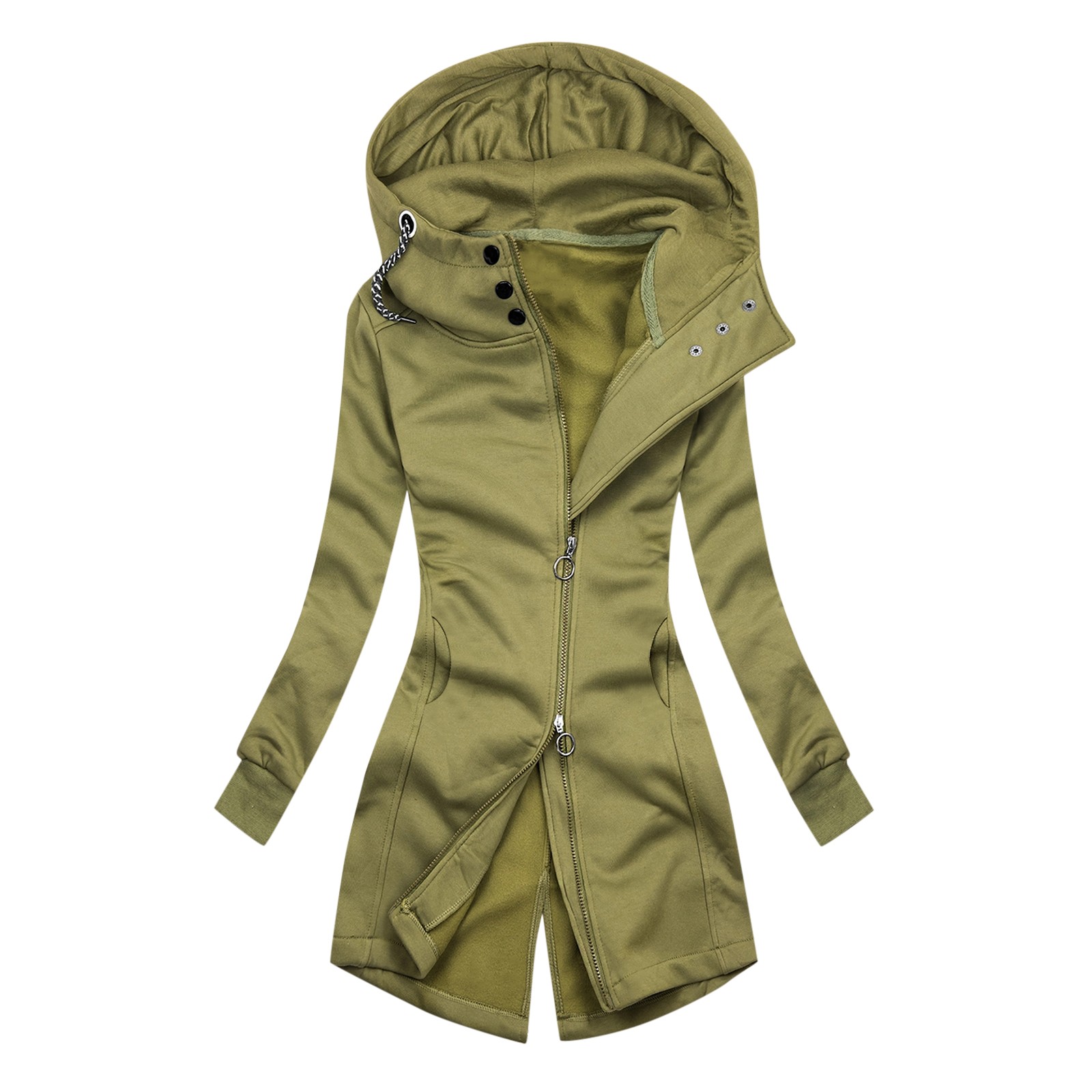 Женская однотонная куртка на молнии с капюшоном и карманами на осень и зиму
