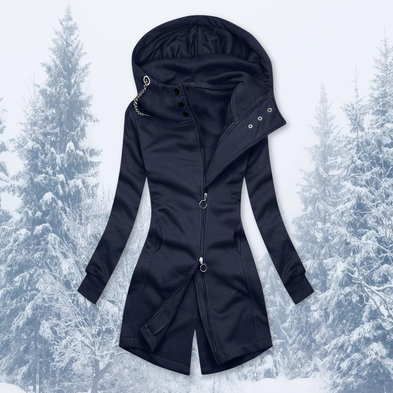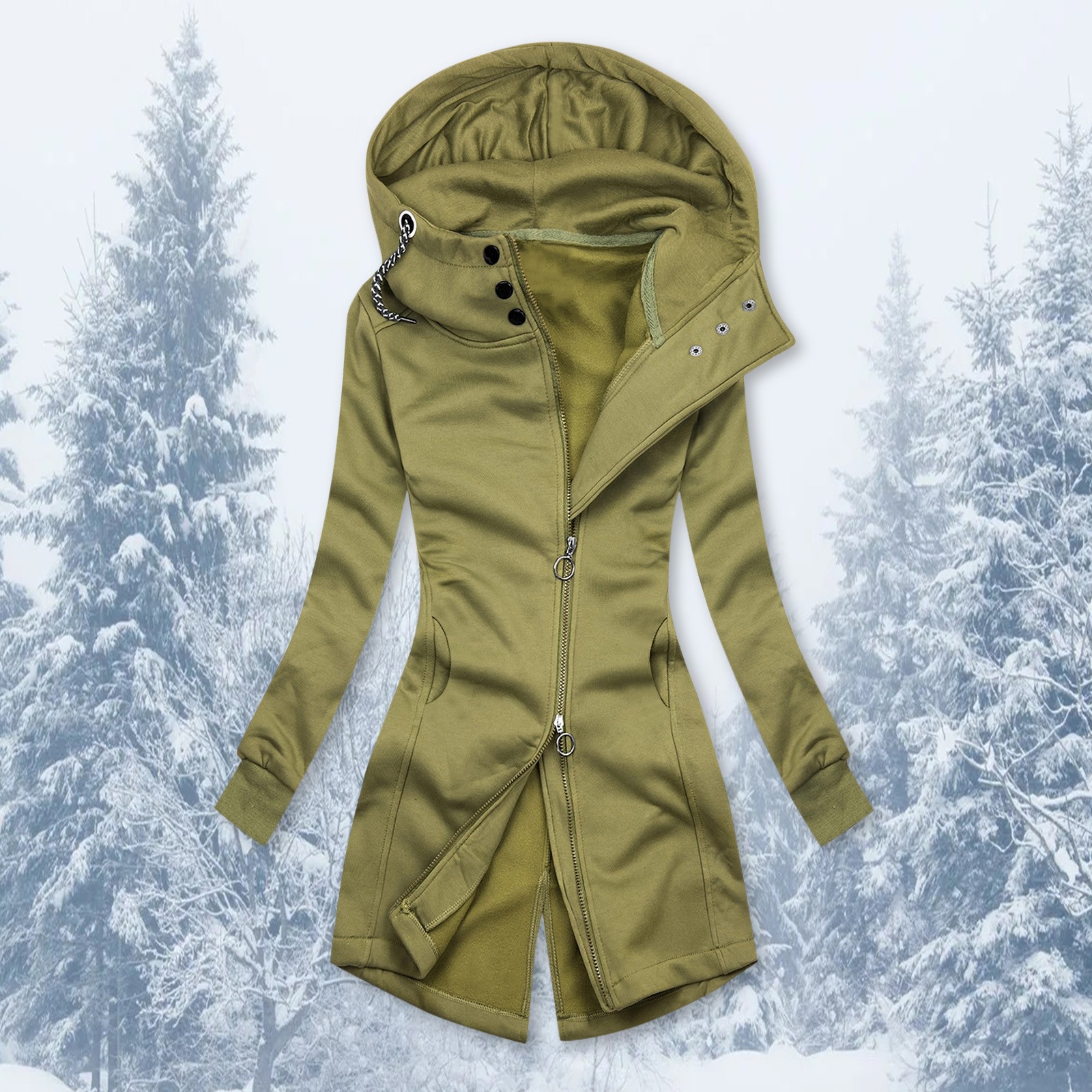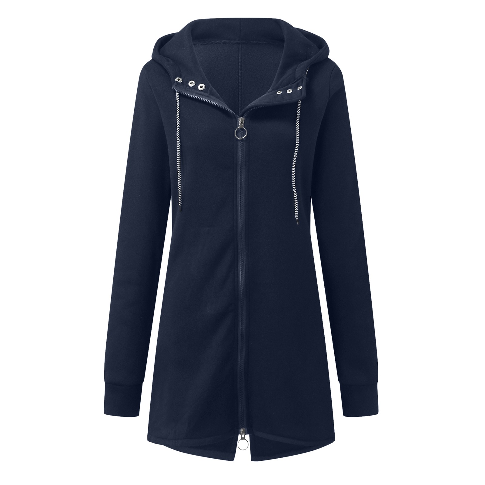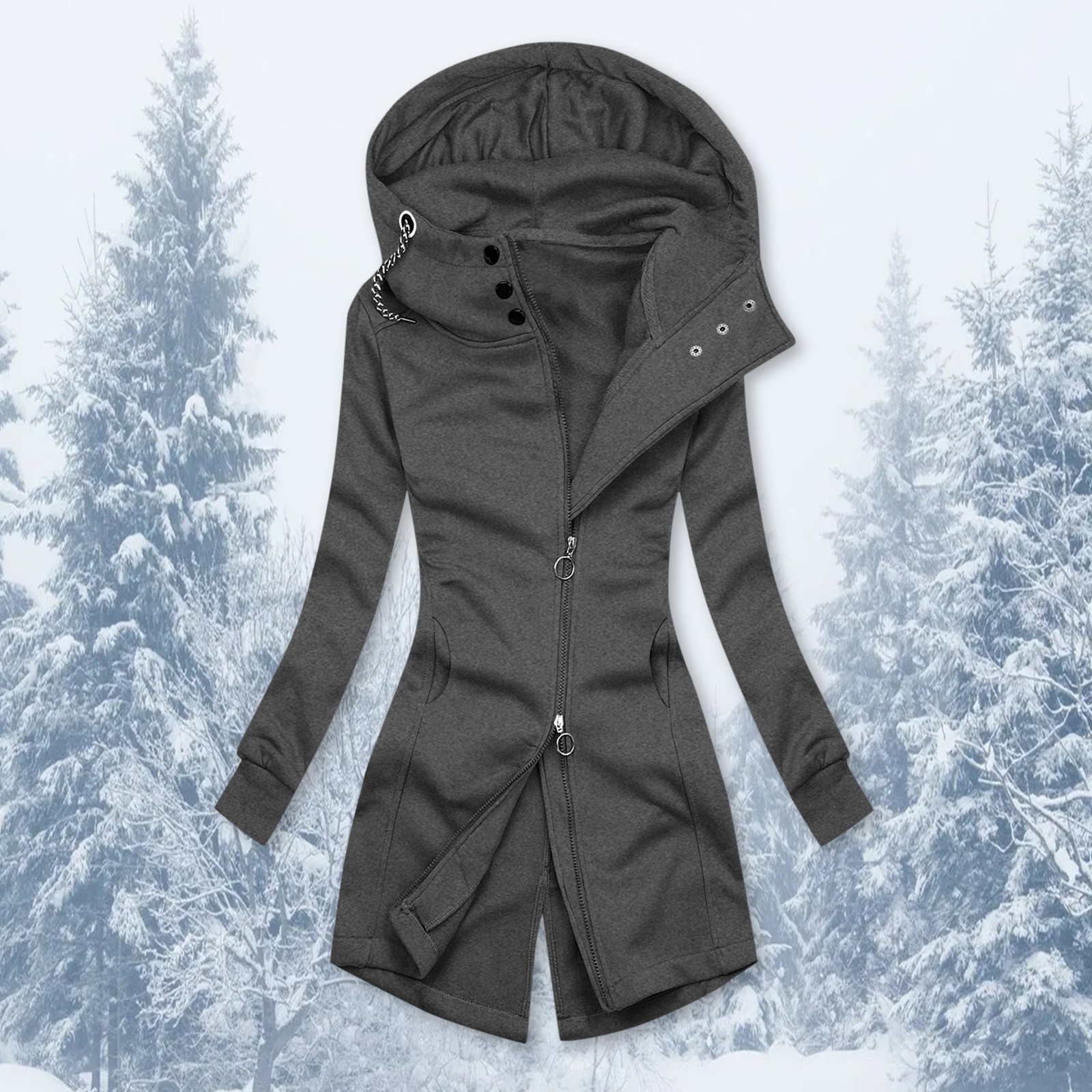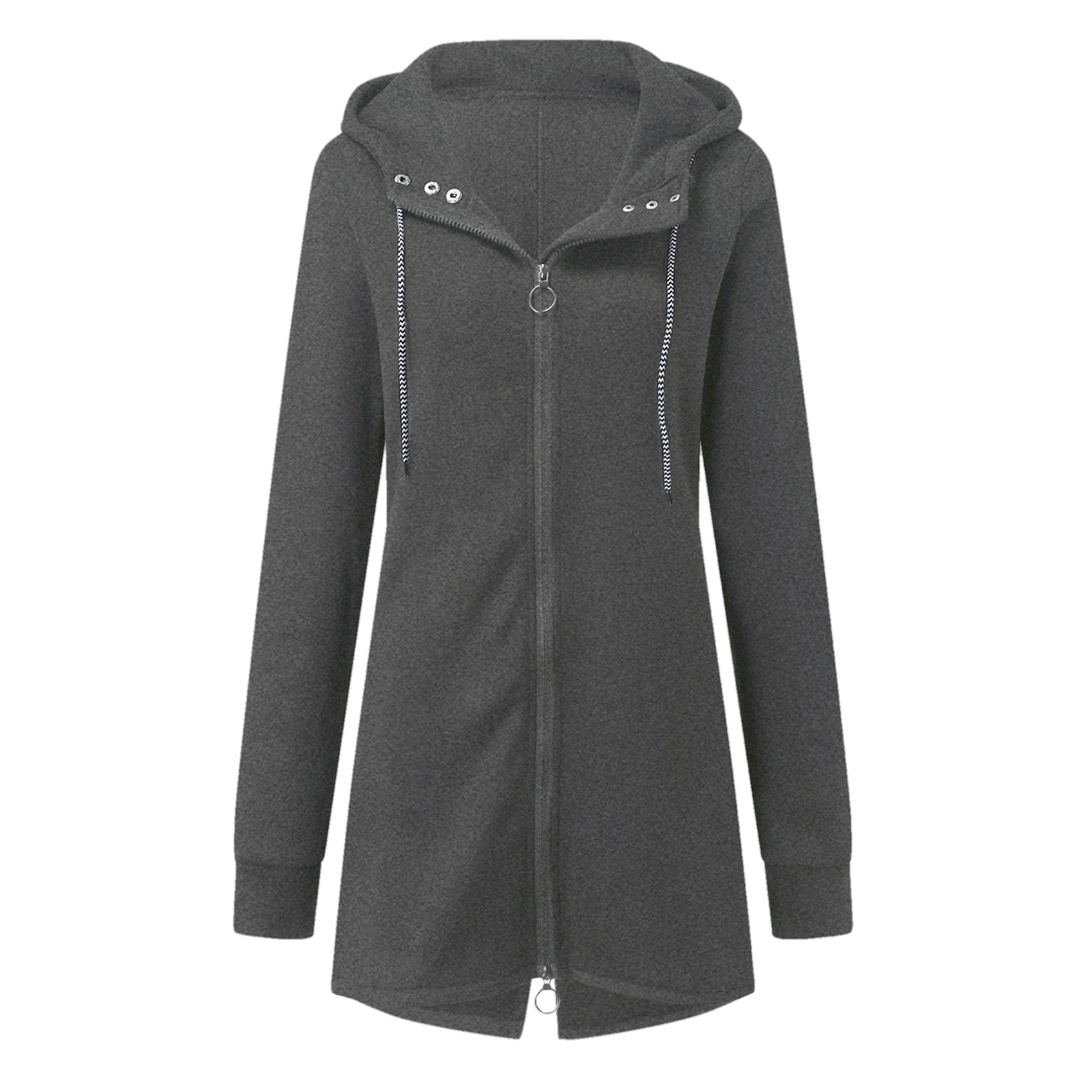 Женская однотонная куртка на молнии с капюшоном и карманами на осень и зиму