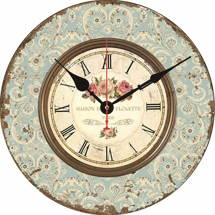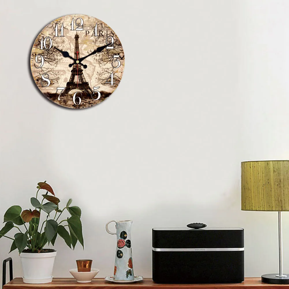 Круглые Настенные часы decoracion salon casa Paris Tower Love, римские цифры, цветочный рисунок, не тикает, звук в гостиной, деревенские часы, ретро деревянные настенные часы, reloj сравнению