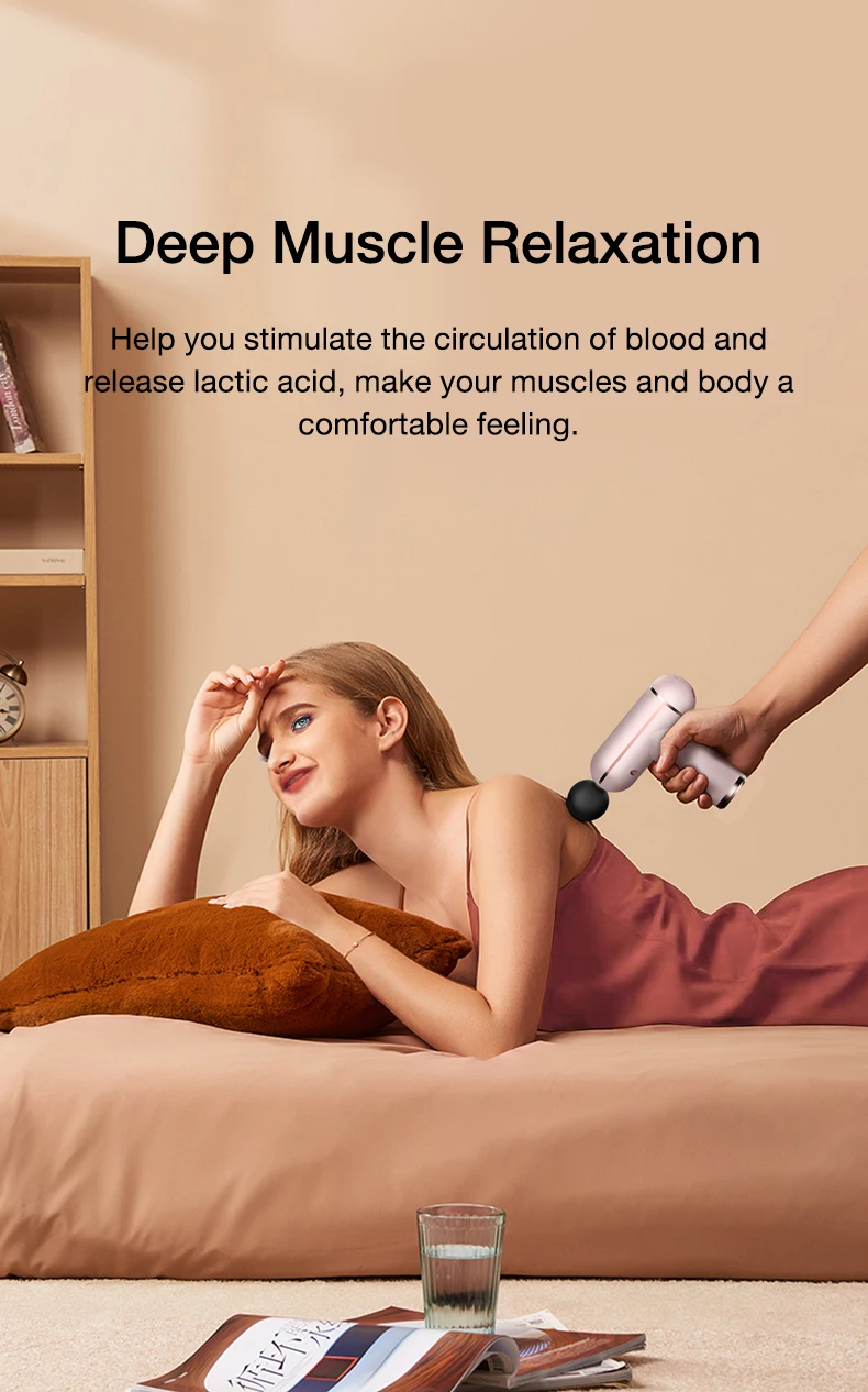 Глубокий массажный пистолет фокусируется на глубоких мышцах и соединительных тканях. Помогает снять мышечную жесткость и болезненность, улучшает здоровье мягких тканей по всему телу. Это также помогает устранить усталость и помогает лучше расслабиться.