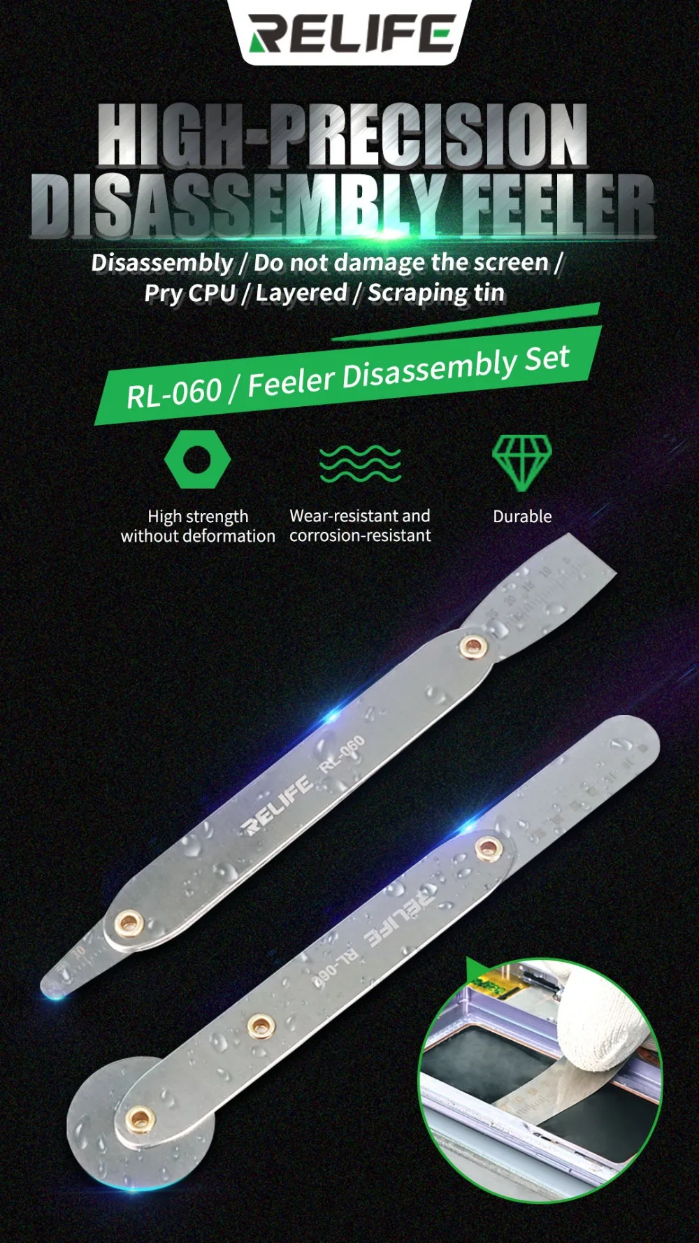 RELIFE RL-060 набор для разборки ультратонкий 1,0 мм толщина метрический щуп дальномер для смартфонов Edge Remove