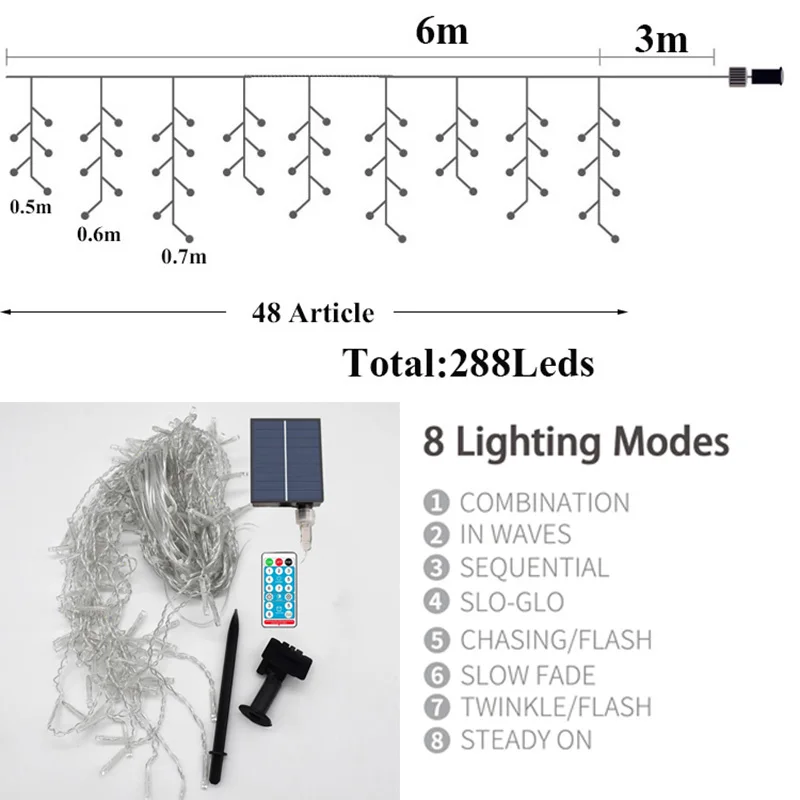 6 м 288 светодиодный Светодиодный Солнечный занавес сосулька гирлянда Рождественские огни гирлянда уличные вечерние украшения для сада для дома двора сада Свадебные Вечерние