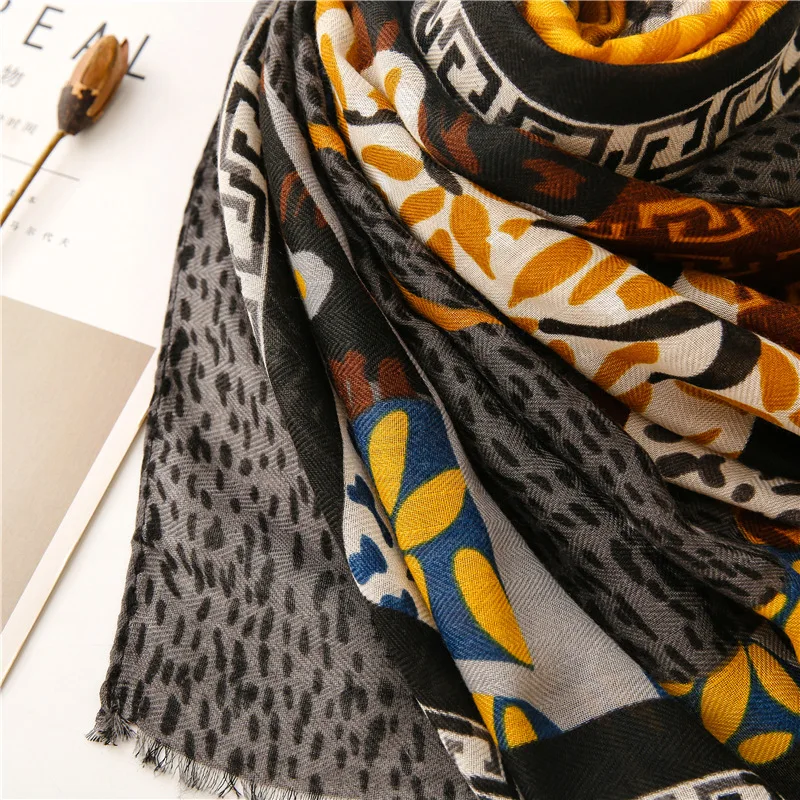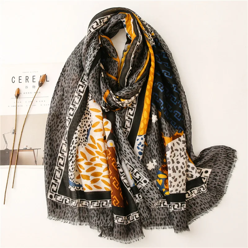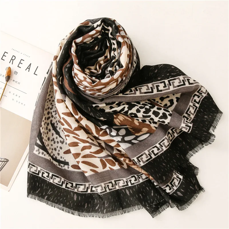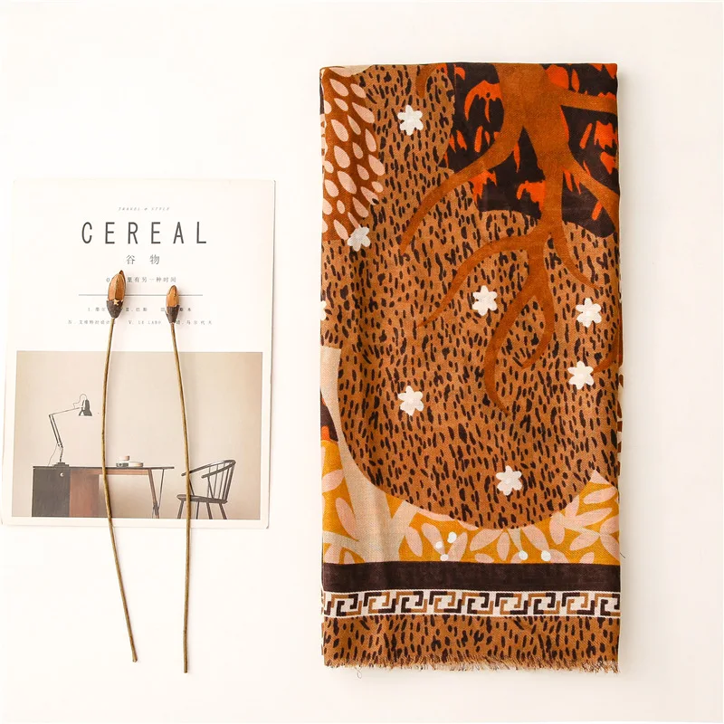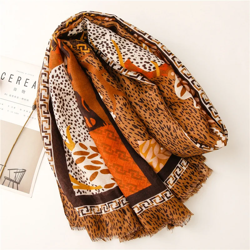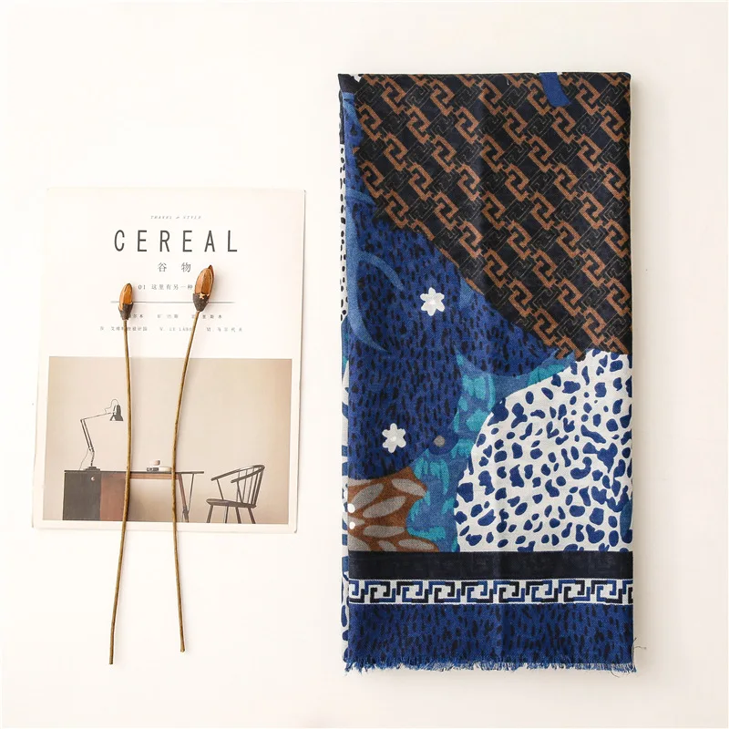 Модный темно-синий Леопардовый цветочный бахрома шаль из вискозы для женщин высокое качество печати обертывание пашмины палантин Bufanda мусульманский хиджаб 180*90 см