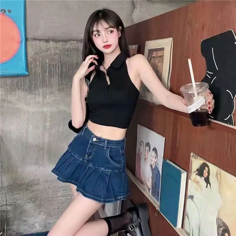 Модные простые женские юбки GUUZYUVIZ с высокой талией джинсовые в Корейском стиле
