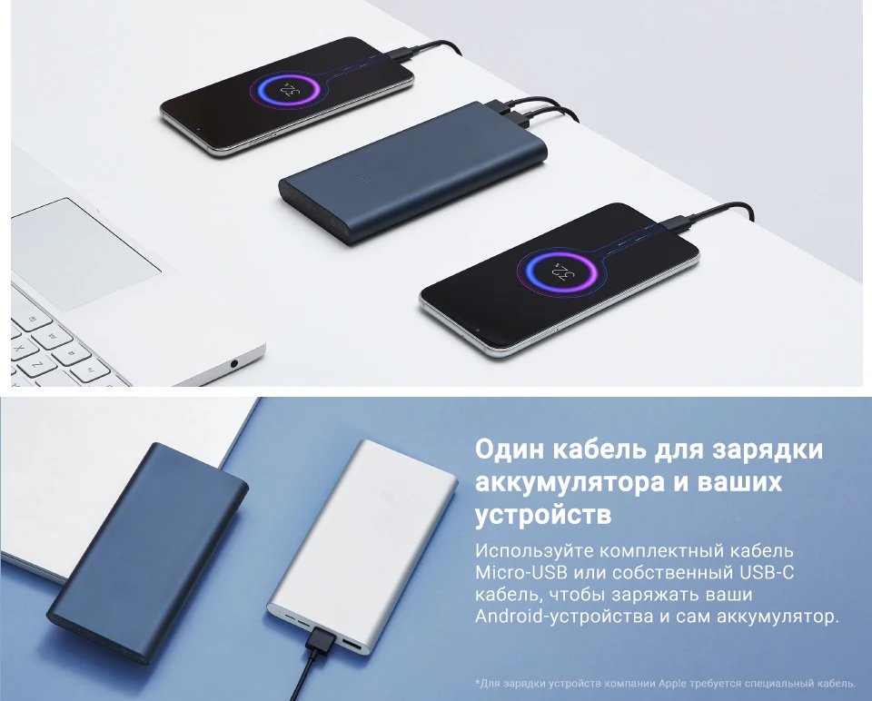 Внешний аккумулятор Xiaomi ZMI WPB01 ёмкость 10000мАч беспроводная зарядка максимальная